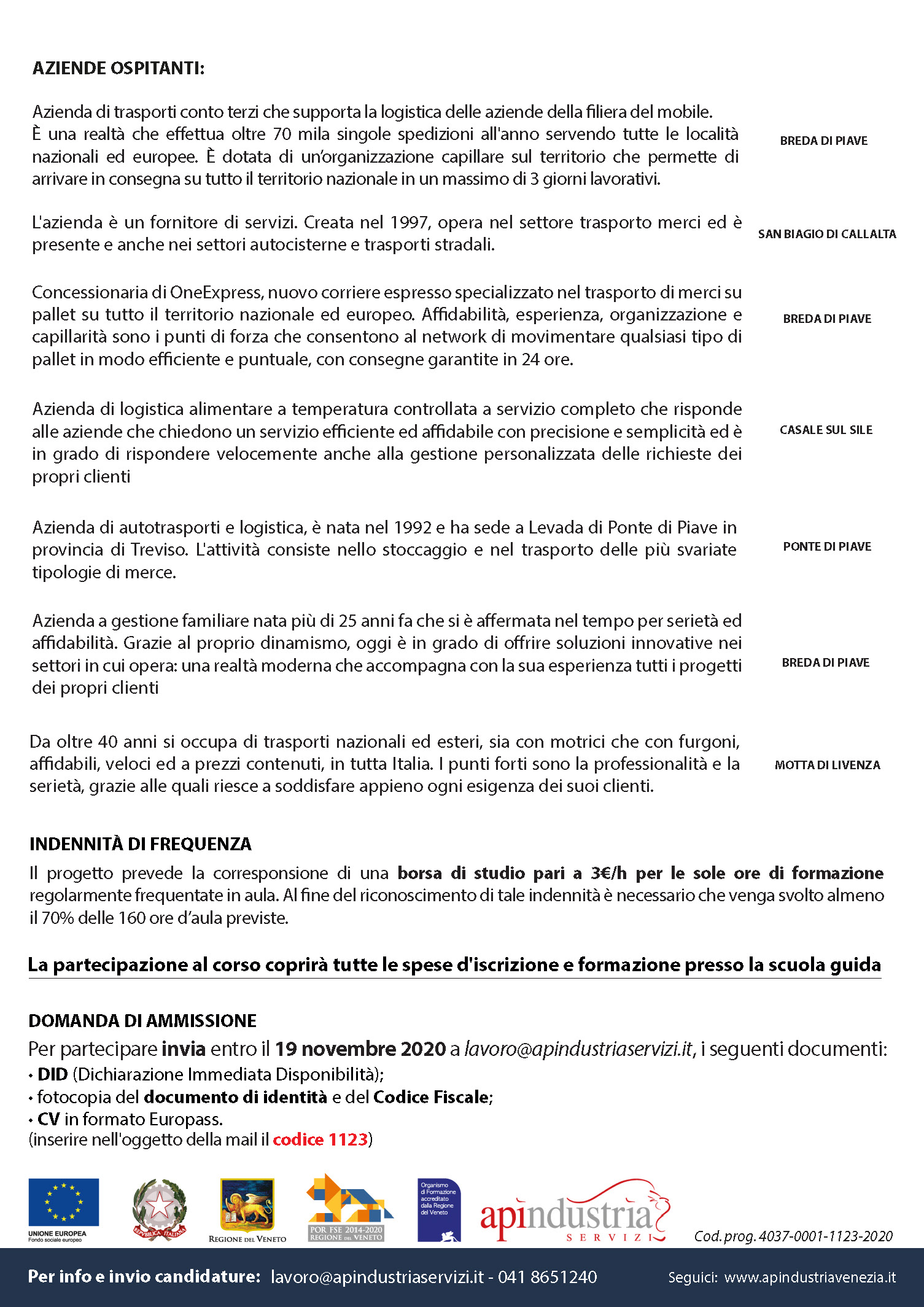 Per partecipare invia entro il 19 novembre 2020 a lavoro@apindustriaservizi.it, i seguenti documenti: