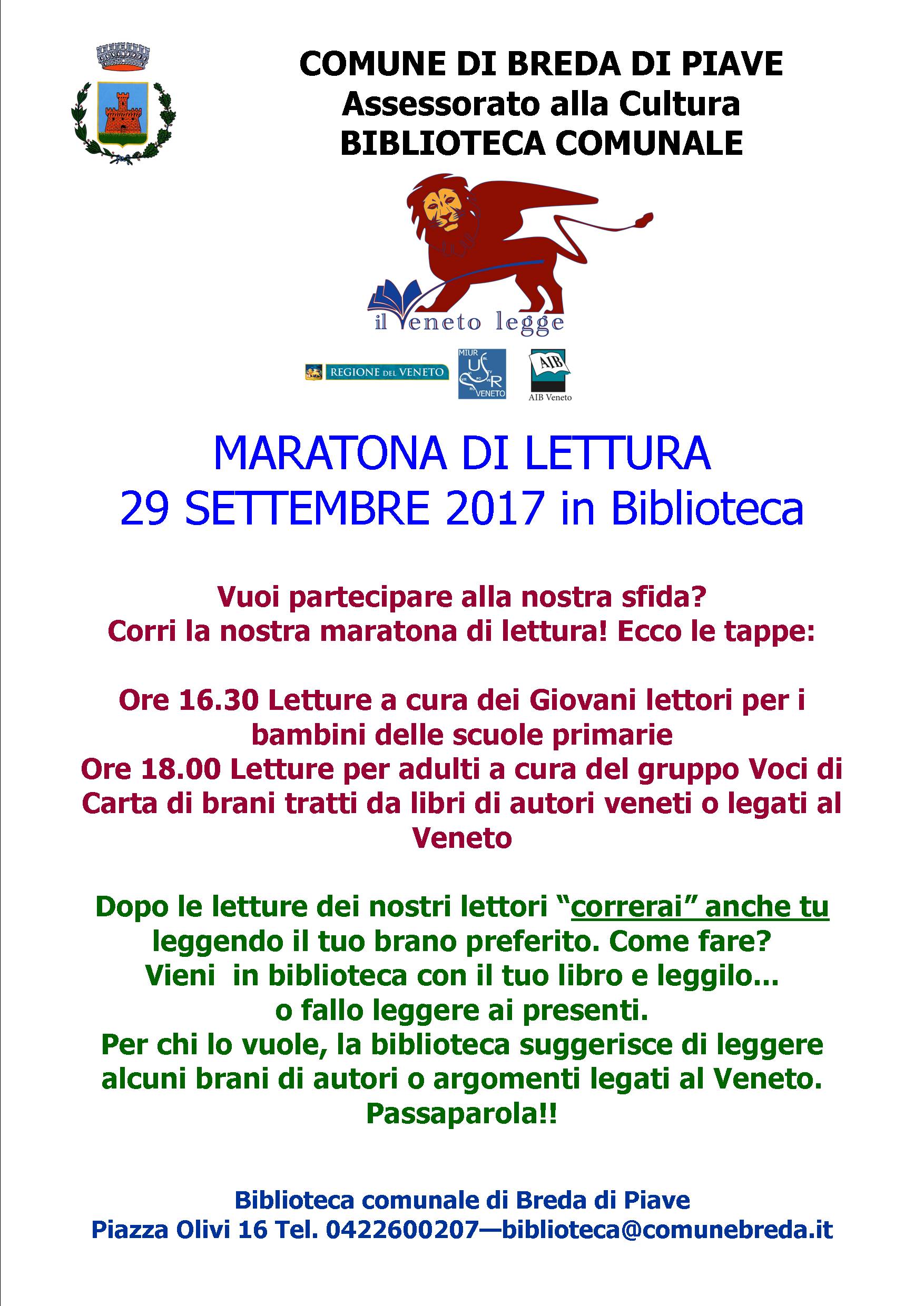 Nell'ambito della manifestazione "Il Veneto legge" (http://ilvenetolegge.it/) la biblioteca di Breda ha organizzato una maratona di lettura a cura dei lettori volontari.