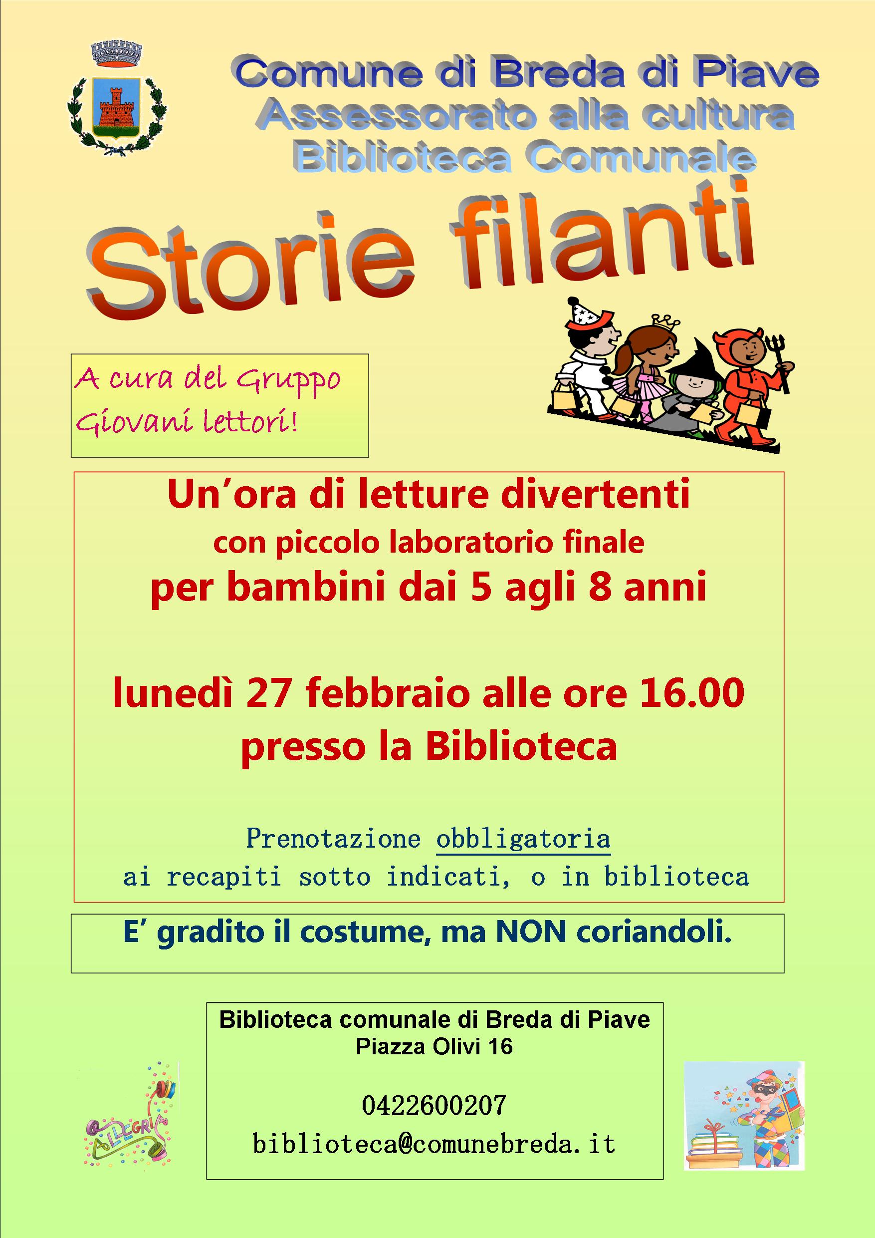 Alle 16 di lunedì 27 febbraio, lunedì grasso, il Gruppo Giovani Lettori ha proposto una lettura animata con laboratorio ai bambini dai 5 agli 8 anni.