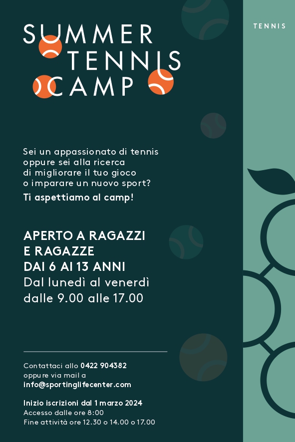 2-13 settembre Sporting Life Center Vacil di Breda 9.00-17.00 6-13 anni Summer Tennis Camp - depliant informativo fronte