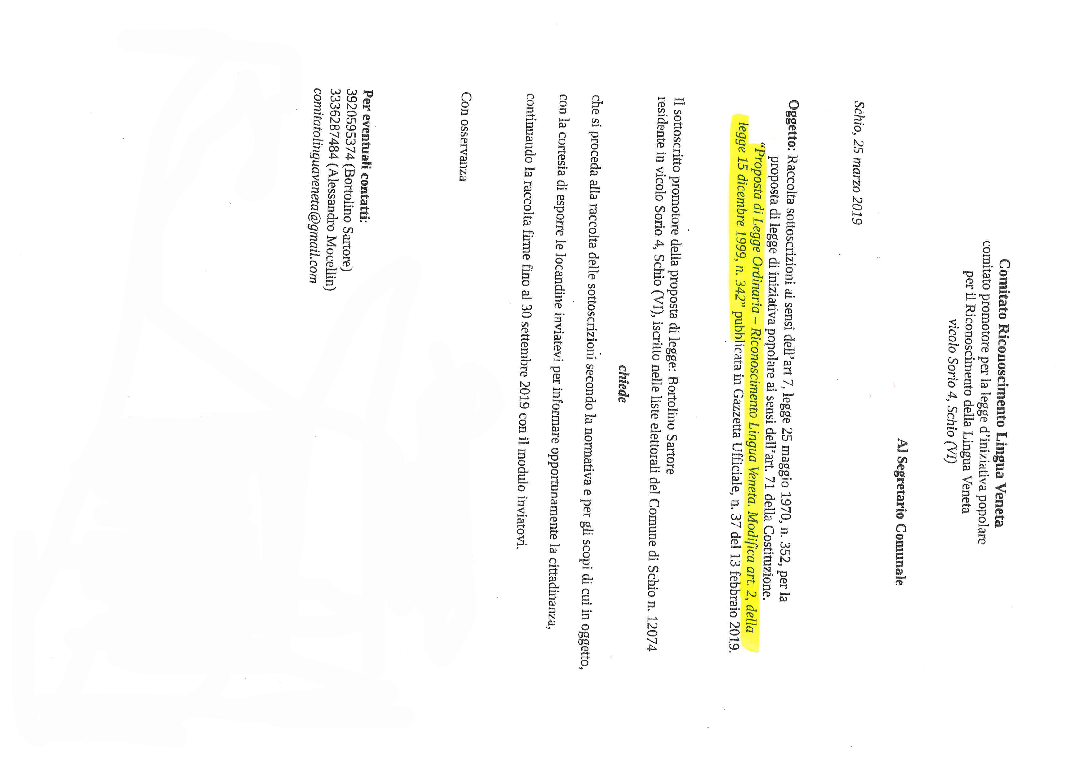 Proposta di legge Comitato Riconoscimento Lingua Veneta.