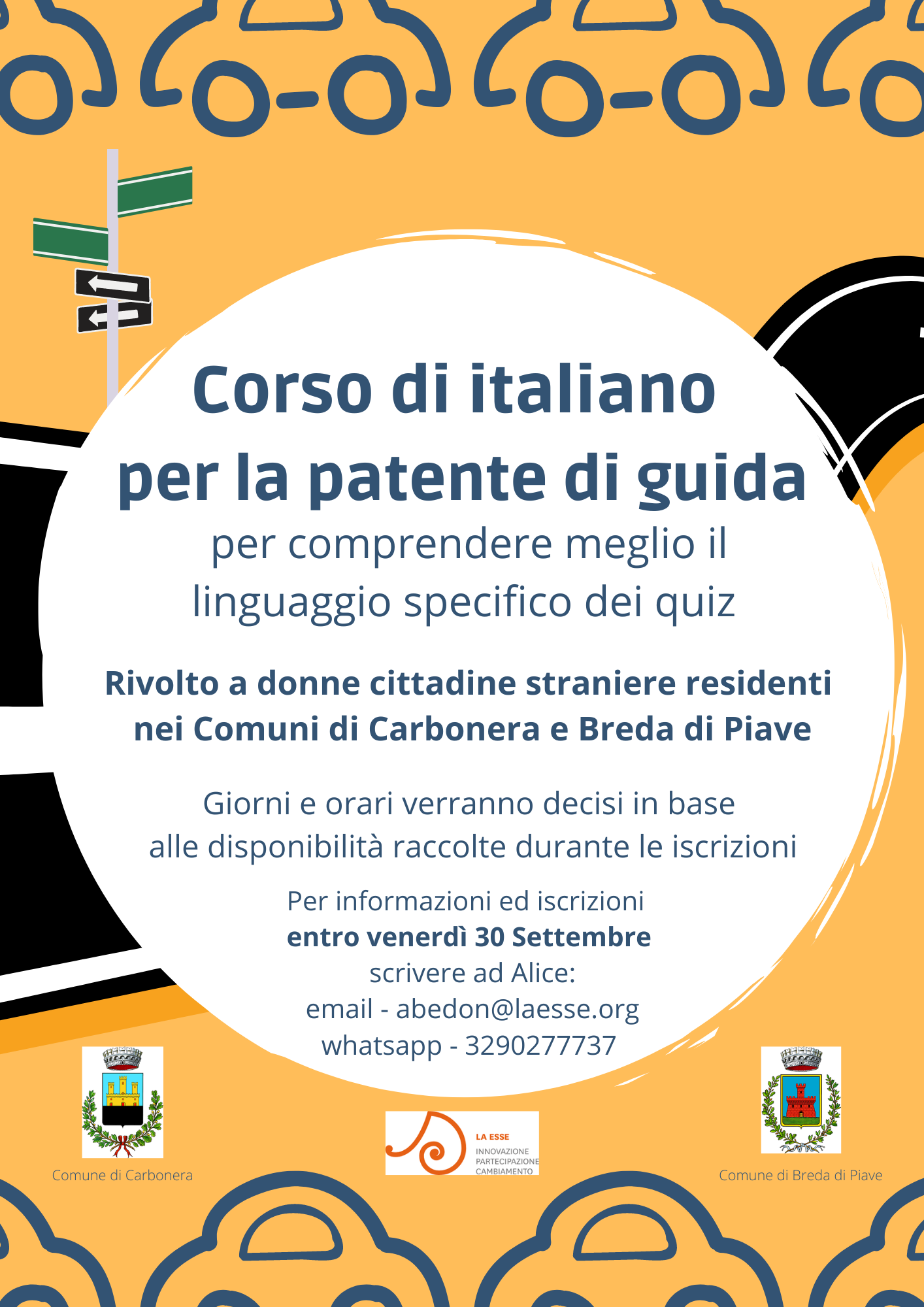 Nell'ambito delle attività promosse dal Progetto Atollo, realizzato in collaborazione tra il Comune di Breda di Piave e il Comune di Carbonera, viene organizzato un corso preparatorio alla teoria per donne straniere residenti nei due comuni, in procinto di iscriversi alla patente o già frequentanti scuola guida. Sei sei interessata clicca qui per leggere il volantino.
