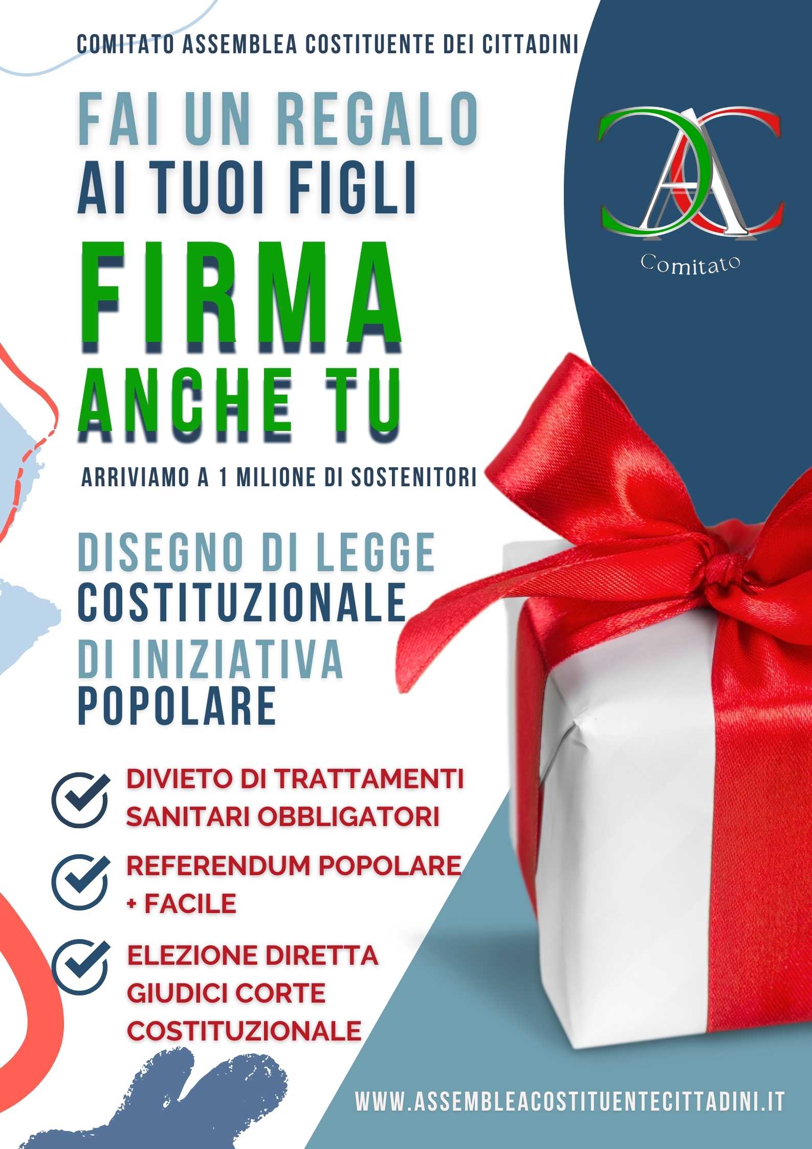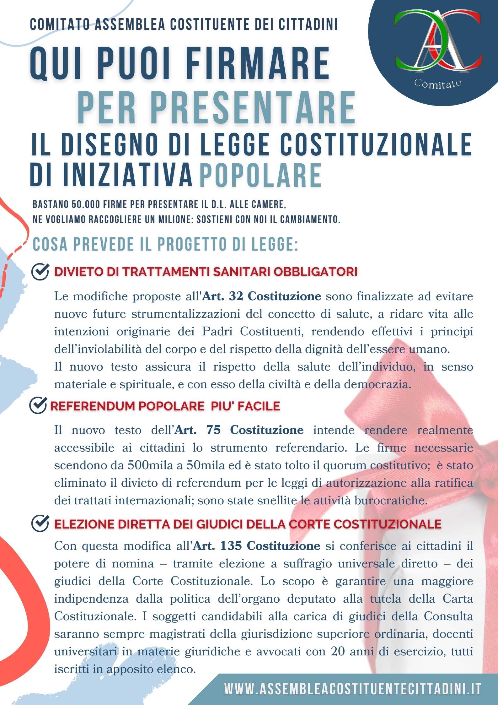 Avviata la raccolta firme per la proposta di legge costituzionale di iniziativa popolare dal titolo "Modifiche agli articoli 32, 75 e 135 della Costituzione e alla legge costituzionale 25 maggio 1970, n. 352", sui seguenti temi: