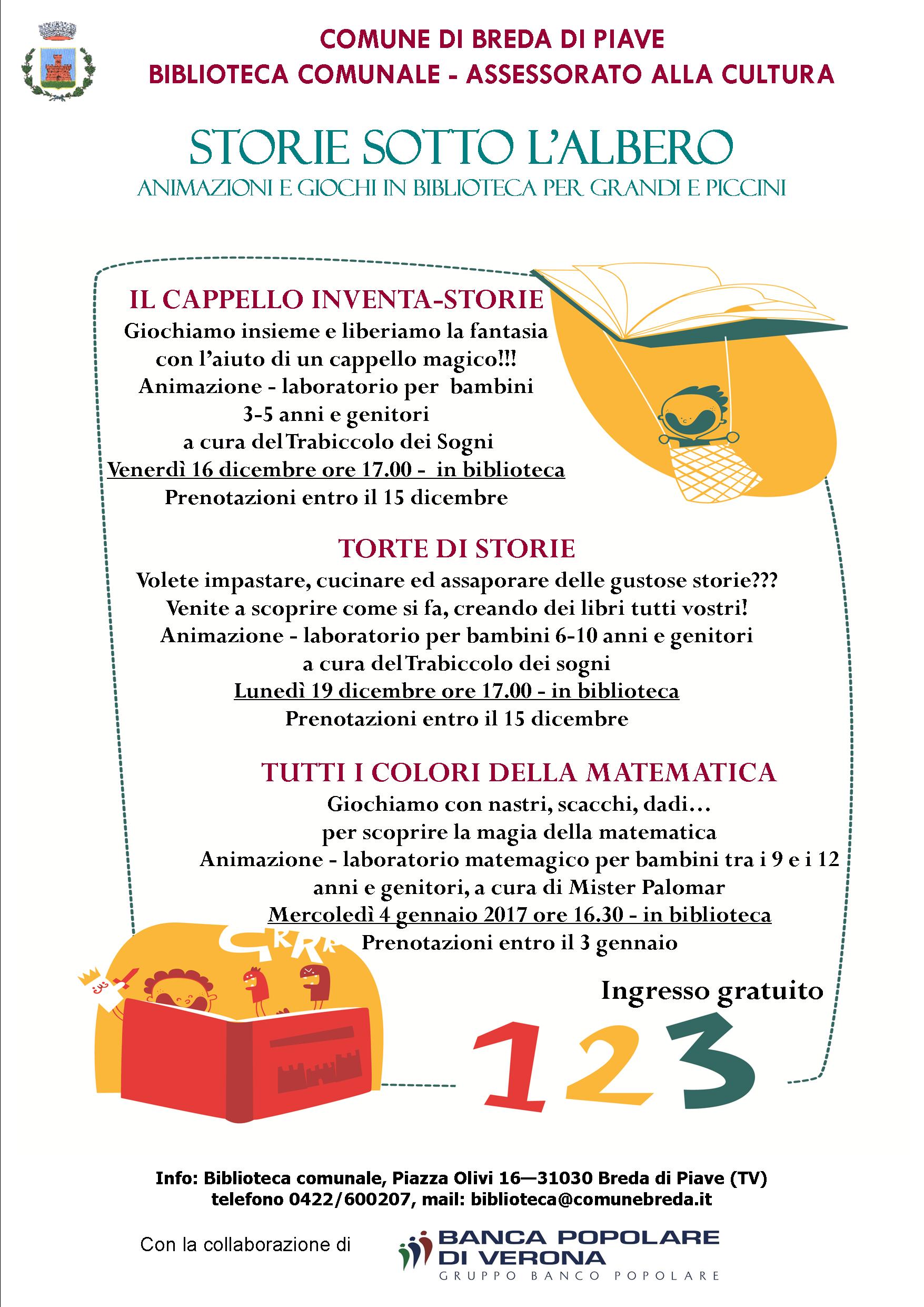 - Lunedì 19 dicembre alle 17 il Trabiccolo dei sogni ha proposto "Torte di storie". I bambini dai 6 ai 10 anni e i loro genitori diventano cuochi di storie!!