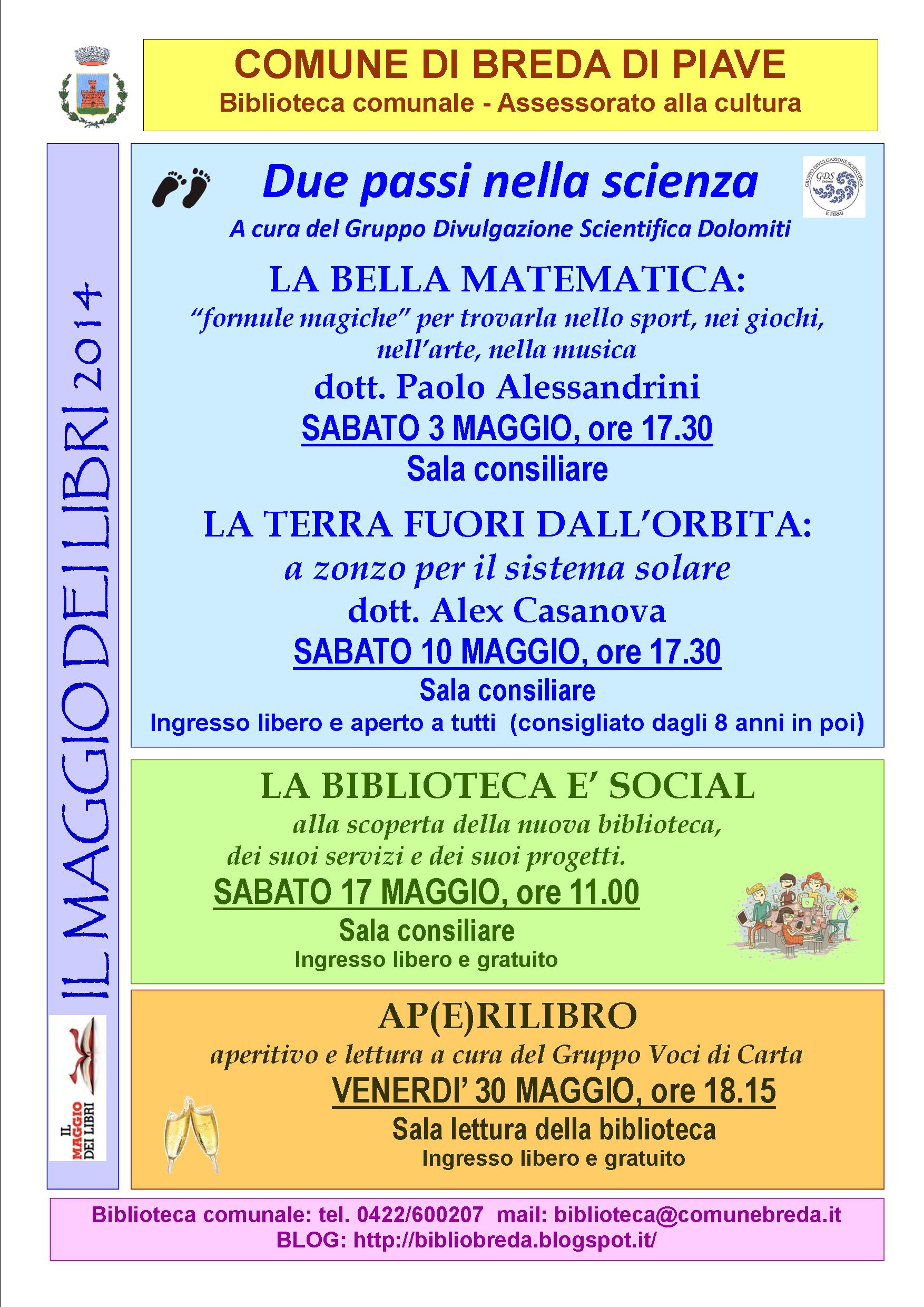 La Biblioteca comunale e il gruppo Voci di Carta hanno organizzato un appuntamento di letture per il mese di maggio.