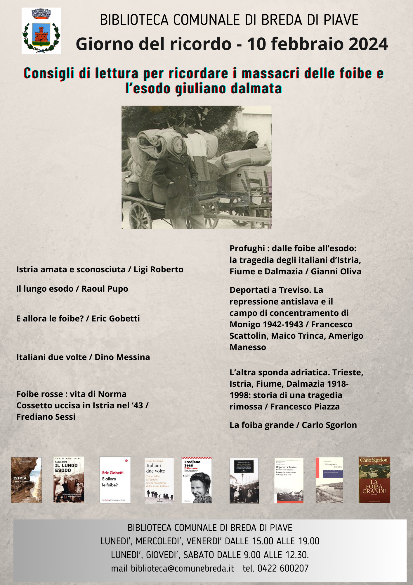 GEN312024 31 gennaio 2024Giorno del Ricordo - 10 febbraio 2024La biblioteca propone alcuni libri per la ricorrenza del Giorno del Ricordo - 10 febbraio 2024.Per vedere la locandina clicca qui. Data creazione: 24-01-2024 | Data ultima modifica: 31-01-2024<<< ... 178179180181 ... >>>