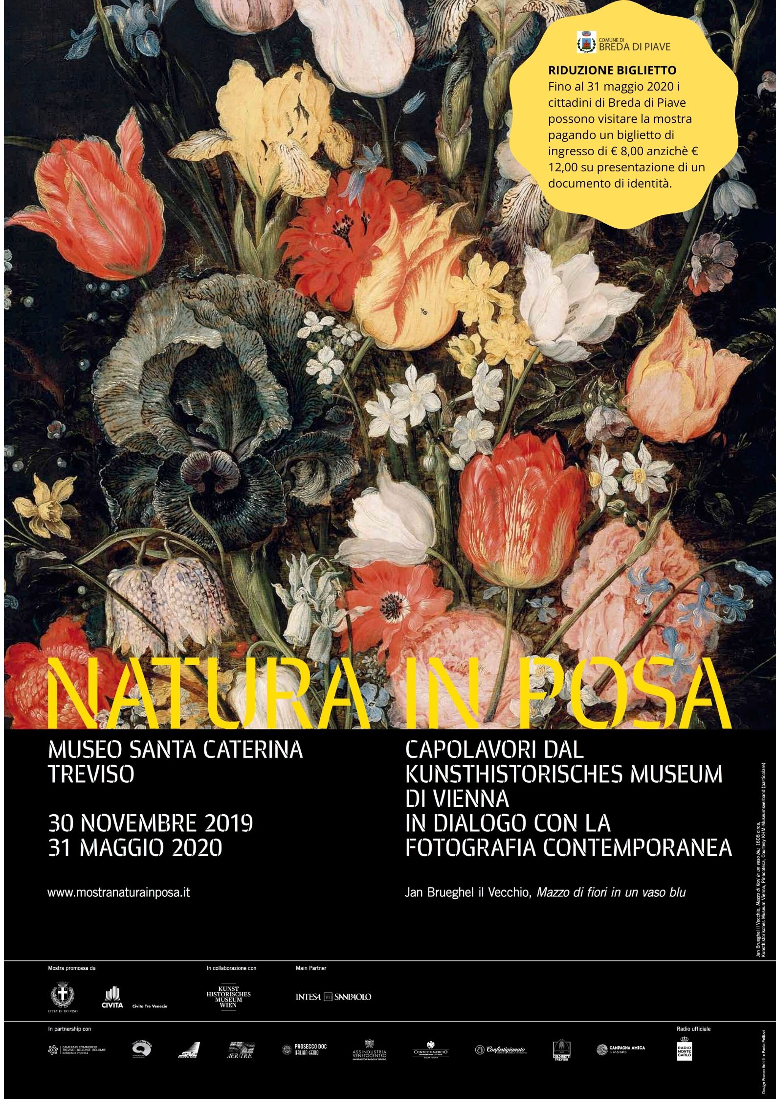 Grazie ad un accordo tra il Comune di Breda e Civita Tre Venezie, i cittadini residenti a Breda possono visitare la mostra "Natura in posa" con uno sconto di 4 euro.