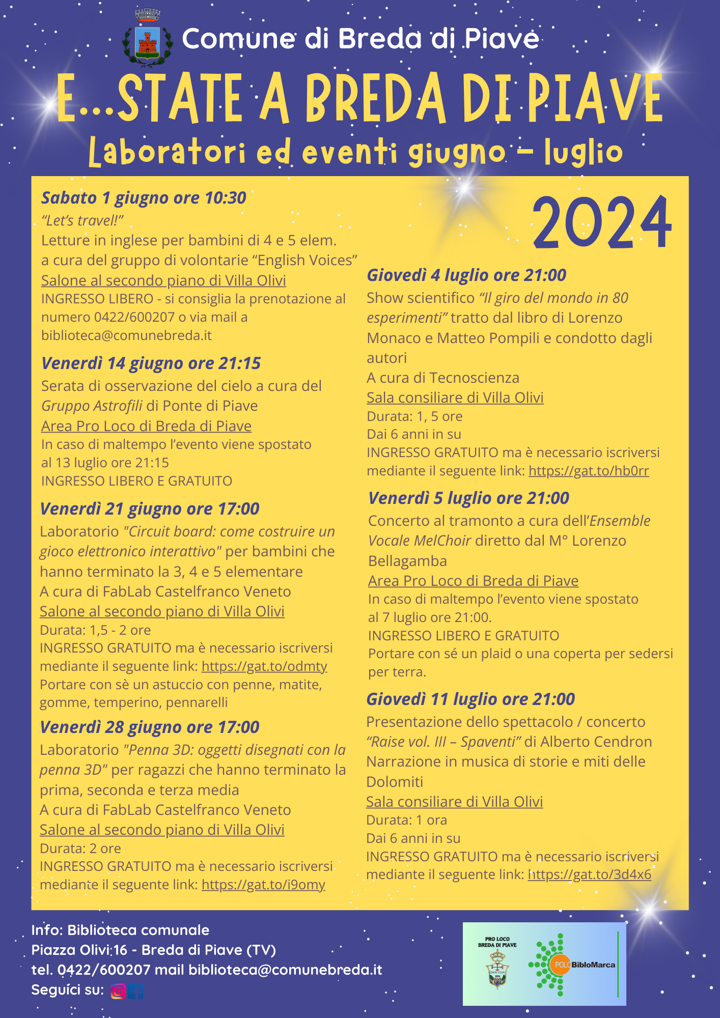 Prosegue la Rassegna estiva 2024, che ha caratteri particolari rispetto a precedenti edizioni: è rivolta principalmente ai giovanissimi e ai bambini e/o alle loro famiglie ed ha prevalente carattere laboratoriale.