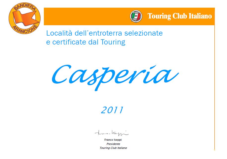 Il comune di Casperia ha soddisfatto i requisiti richiesti dal Touring Club Italiano per l’assegnazione della “Bandiera arancione”, pertanto è riconfermato il marchio di qualità turistico-ambientale del Tci.