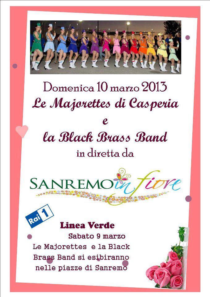 Sabato 9 e domenica 10 marzo si è svolta a Sanremo (Im) la celebre manifestazione Sanremo in fiore con la tradizionale sfilata dei Carri Fioriti. Il tema dell’edizione 2013 è stato “L’uomo nello spazio”. Casperia è stata presente con il suo gruppo di majorettes – l’unico gruppo folkloristico italiano, se si escludono quelli sanremesi – esibitesi anche davanti il celeberrimo teatro Ariston insieme alla Black Brass Band di Torri in Sabina.