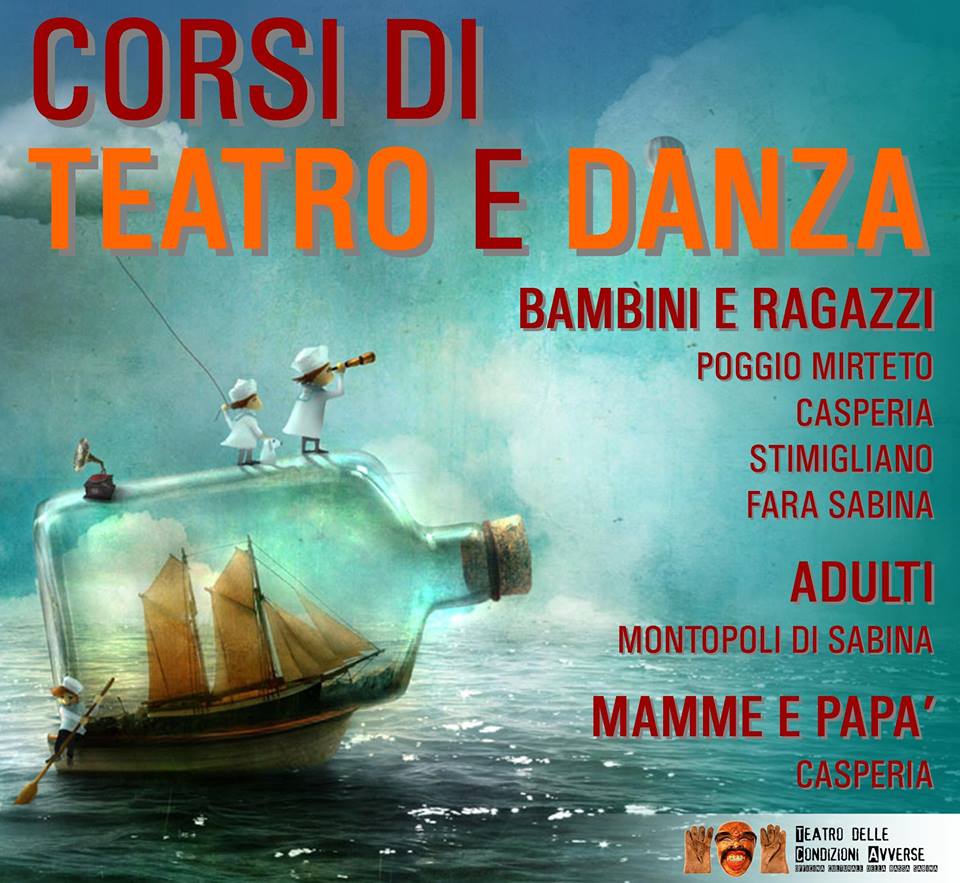 Casperia va a teatro e balla con i corsi del Teatro delle Condizioni avverse. L’assessorato alla cultura ha patrocinato il progetto della compagnia dedicato a tutte le età. Per i bambini, i corsi si tengono il martedì dalle 17 alle 18,15; per gli adulti, il venerdì dalle 21 alle 22,30; tutti nel Palazzo della Cultura, in pieno centro storico. Per informazioni ed iscrizioni rivolgersi ad Andrea Maurizi: telefono 328.1125107; posta elettronica andrea@condizioniavverse.org