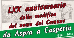 «I settant’anni di Casperia sono ben poca cosa rispetto al millennio di Aspra – aggiunge il consigliere Marco Cossu, promotore dell’iniziativa – soprattutto perché il nuovo nome è privo di solide basi storiche. Tuttavia oggi nel mondo il paese è conosciuto come Casperia, al cui nome si associano bellezza e qualità. Per cristallizzare la memoria storica, esattamente quattro anni fa modificammo lo statuto comunale riconoscendo ufficialmente i castra raffigurati dai tre colli presenti nello stemma araldico: Aspra, Caprignano, S. Angelo. L’abbiamo scritto anche nei cartelli stradali di benvenuto nel centro abitato di Casperia: “Aspra fino al 1946”. Una cosa non l’abbiamo potuta scrivere: aspresi per sempre».