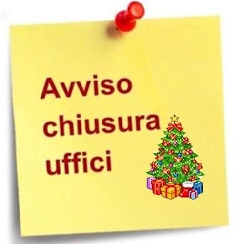 Si comunica che gli uffici comunali lunedì 31 dicembre 2018 chiuderanno alle ore 12,30.