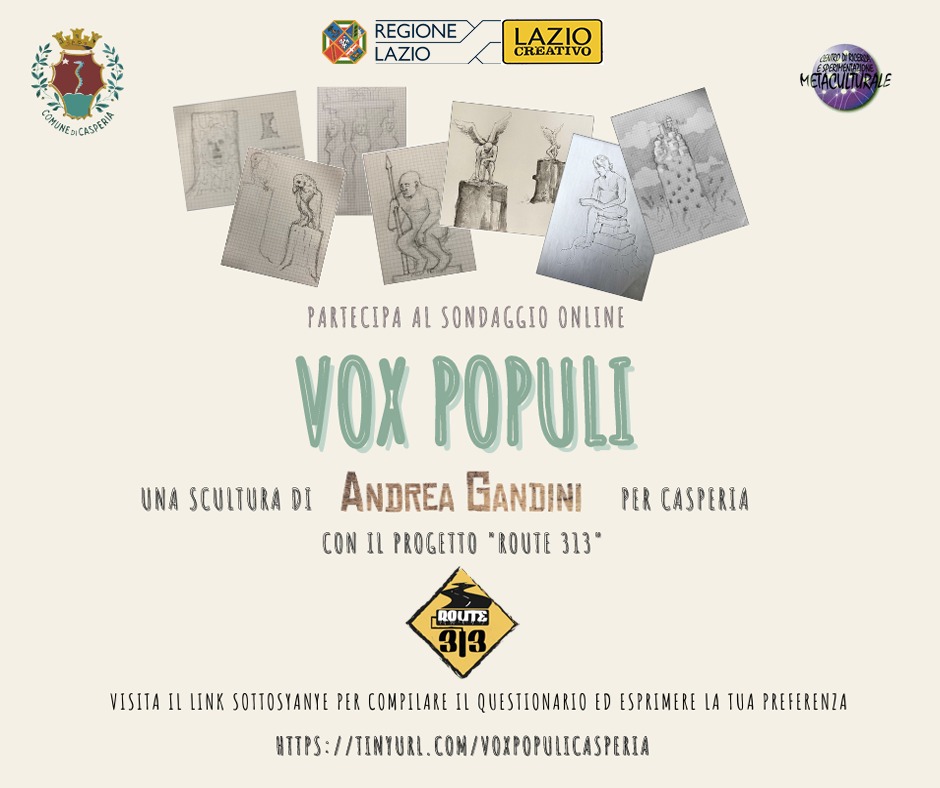 Con il questionario VOX POPULI, la popolazione è chiamata a scegliere, tra i bozzetti proposti, il soggetto della scultura. L’Amministrazione vuole che la comunità sia soggetto attivo nel processo decisionale di modellazione dello spazio sociale.