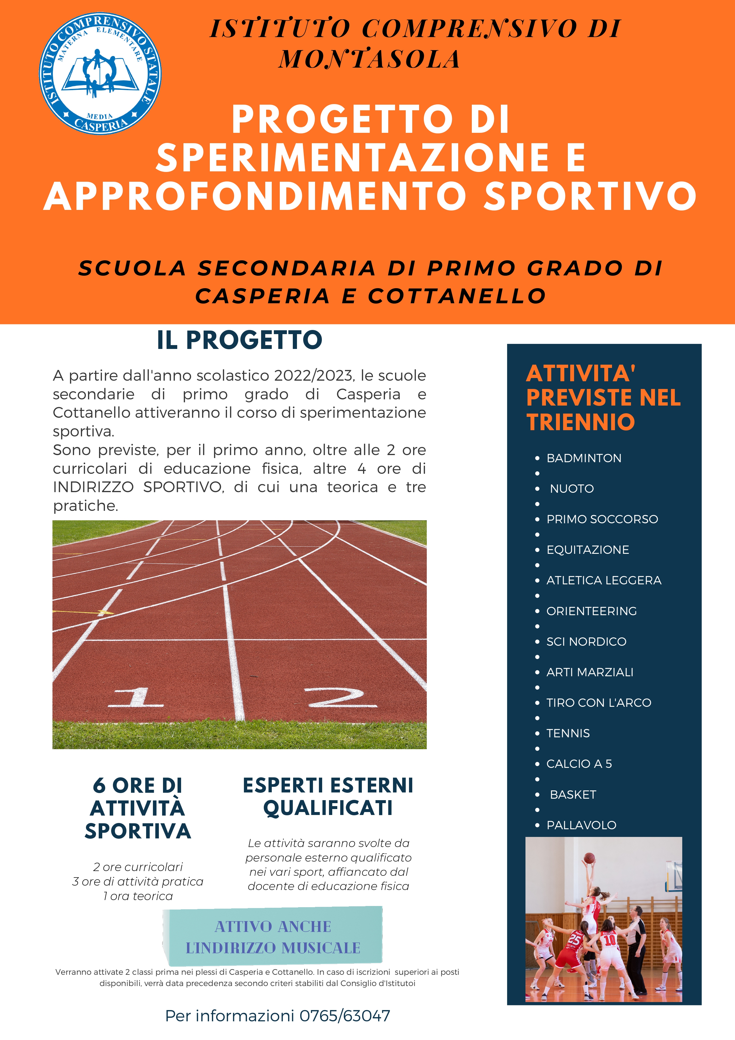 Importante novità per il prossimo anno scolastico nell’Istituto comprensivo di Montasola (già Casperia): partirà il progetto sperimentale sportivo nelle scuole secondarie di primo grado; un unicum in Sabina con un percorso di studi triennale che nasce con lo scopo di diffondere la conoscenza e la pratica dello sport tra i giovani. Un miglioramento dell’offerta formativa che garantirà agli alunni una bella opportunità di crescita personale, socializzazione ed integrazione come solo l’attività sportiva sa dare.