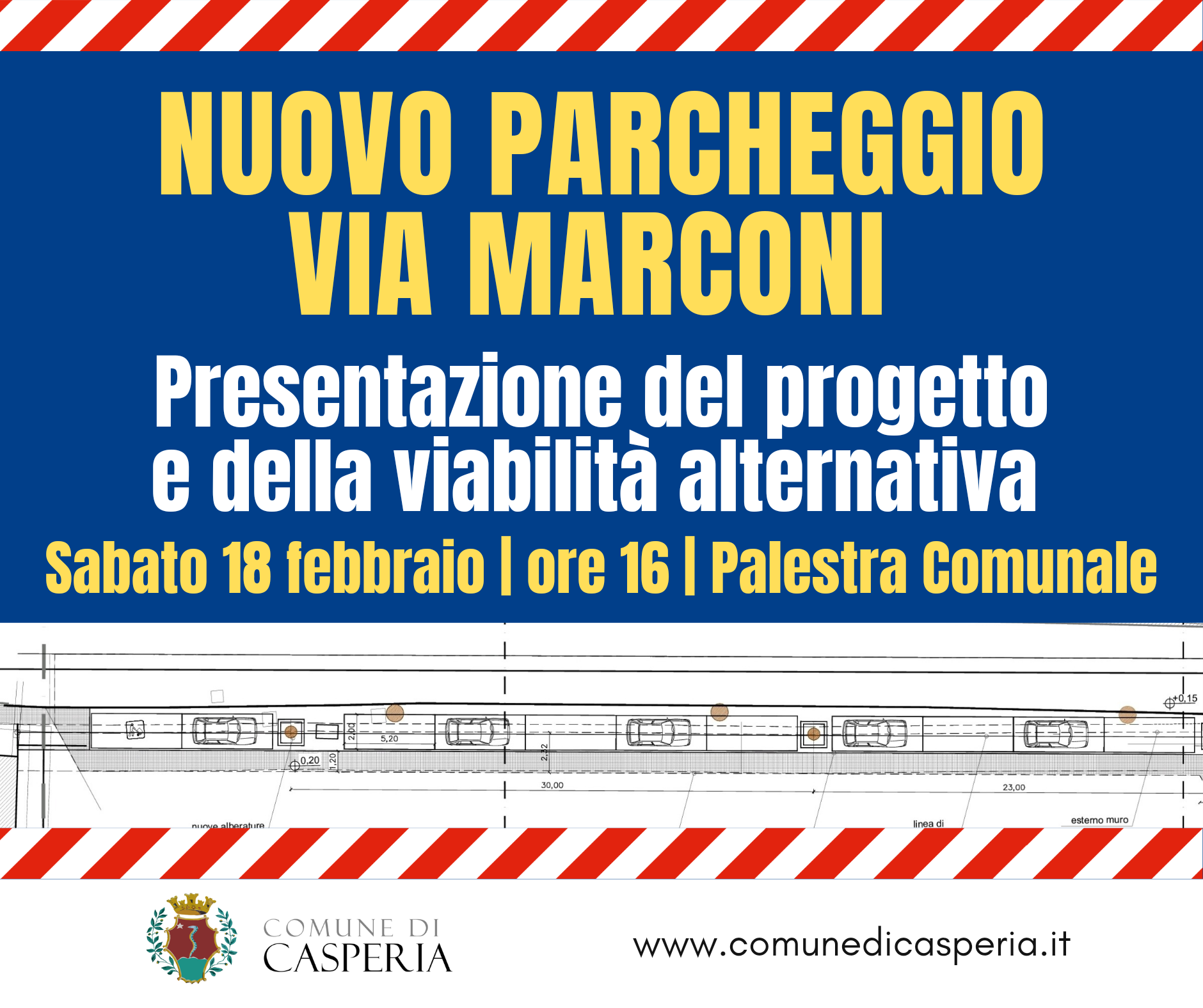 Si avvicina l’inizio dei lavori per la realizzazione del nuovo parcheggio in via Guglielmo Marconi. Prima dell’apertura del cantiere, l’amministrazione comunale presenta il progetto alla popolazione sabato 18 febbraio alle ore 16 nella palestra comunale. Nella stessa sede sarà illustrata anche la viabilità alternativa che dovrà essere percorsa nel periodo di interruzione temporanea della strada provinciale 49 (via Marconi tra i civici 56 e 73).