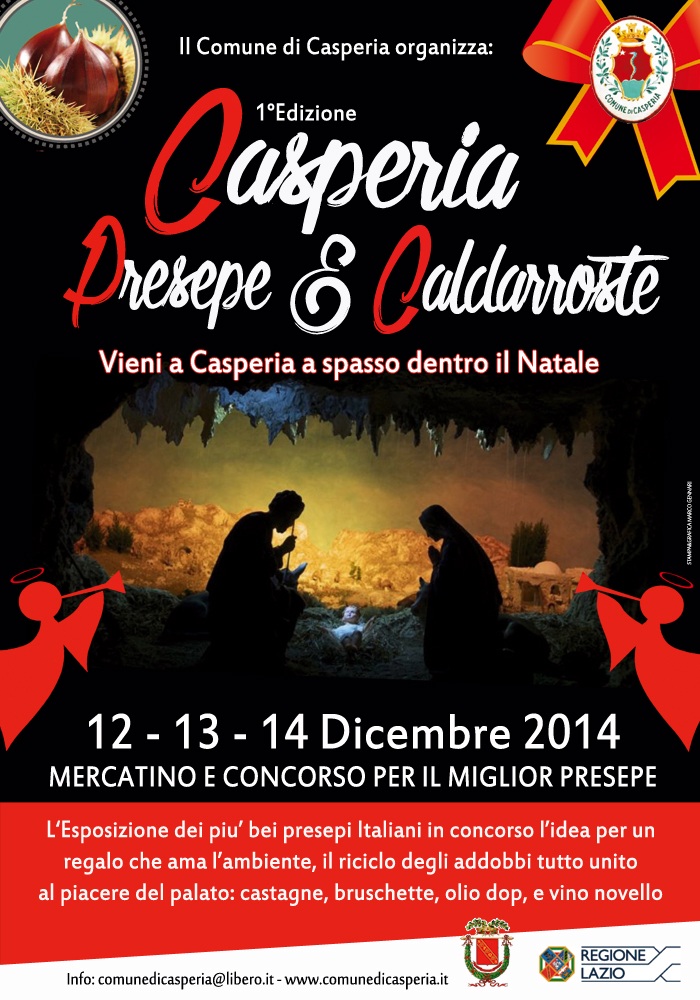 Da venerdì 12 a domenica 14 dicembre, Casperia ospiterà la prima edizione di Casperia: presepe e caldarroste, la manifestazione promossa dall’Assessorato alla Cultura, Turismo e Ambiente per celebrare la principale ricorrenza dell’anno. Fulcro dell’iniziativa sarà il concorso a premi “Presepe e caldarroste”, con l’esposizione di decine di presepi a cielo aperto, da scoprire tra gli scorci più suggestivi dell’antico borgo. Continue reading