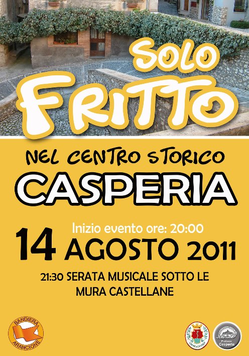 Domenica 14 agosto, a cena, la ProLoco di Casperia con il patrocinio del Comune di Casperia presenta la prima edizione di Solo fritto: degustazione di diverse specialità rigorosamente fritte nella fantastica scenografia del centro storico di Casperia (già Aspra). Inoltre, spettacolo musicale sotto le mura castellane.