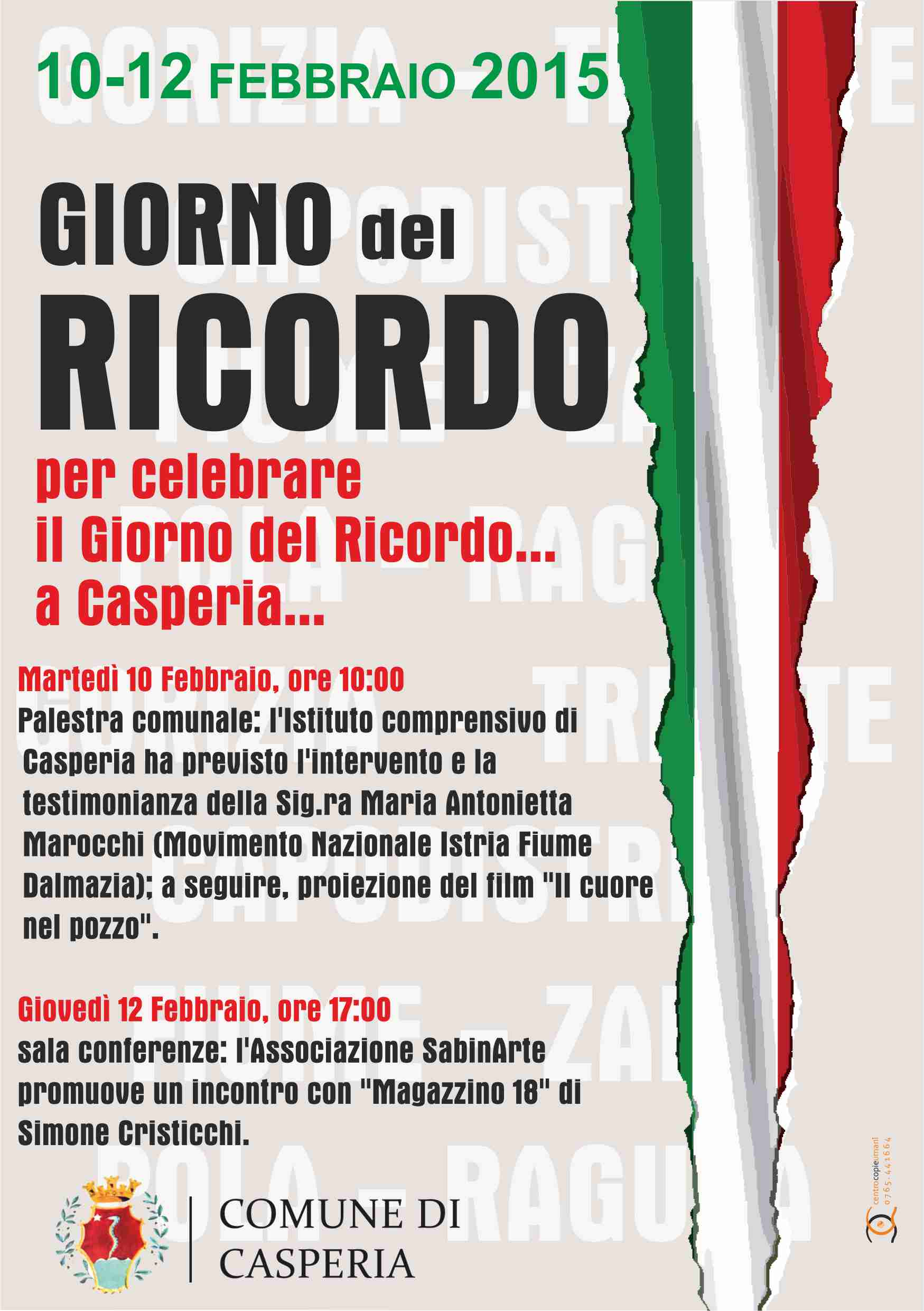 Il 10 febbraio di ogni anno, ai sensi della legge 92/2004, l’Italia celebra il Giorno del Ricordo al fine di conservare e rinnovare la memoria della tragedia degli italiani e di tutte le vittime delle foibe, dell’esodo dalle loro terre degli istriani, fiumani e dalmati nel secondo dopoguerra e della più complessa vicenda del confine orientale. L’Amministrazione comunale, le associazioni e l’Istituto comprensivo di Casperia hanno promosso diverse iniziative in tal senso. Continue reading