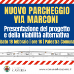 Si avvicina l’inizio dei lavori per la realizzazione del nuovo parcheggio in via Guglielmo Marconi. Prima dell’apertura del cantiere, l’amministrazione comunale presenta il progetto alla popolazione sabato 18 febbraio alle ore 16 nella palestra comunale. Nella stessa sede sarà illustrata anche la viabilità alternativa che dovrà essere percorsa nel periodo di interruzione temporanea della strada provinciale 49 (via Marconi tra i civici 56 e 73). Continue reading