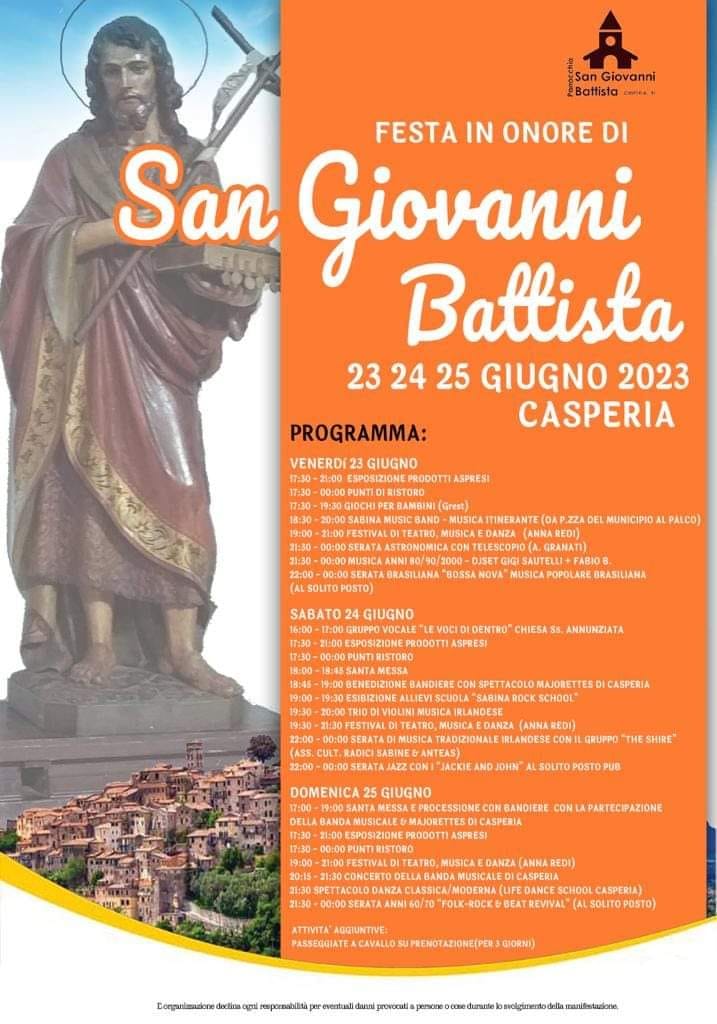 Dal 23 al 25 giugno a #Casperia si festeggia il santo patrono Giovanni Battista!