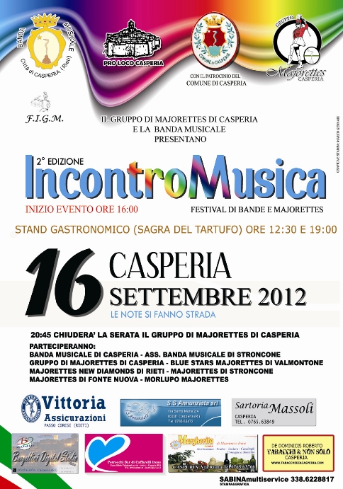 Partecipano le bande musicali di Casperia e Stroncone, le majorettes di Casperia (Ri), Rieti (Ri), Stroncone (Tr), Morlupo (Rm), Fonte Nuova (Rm), Valmontone (Rm).