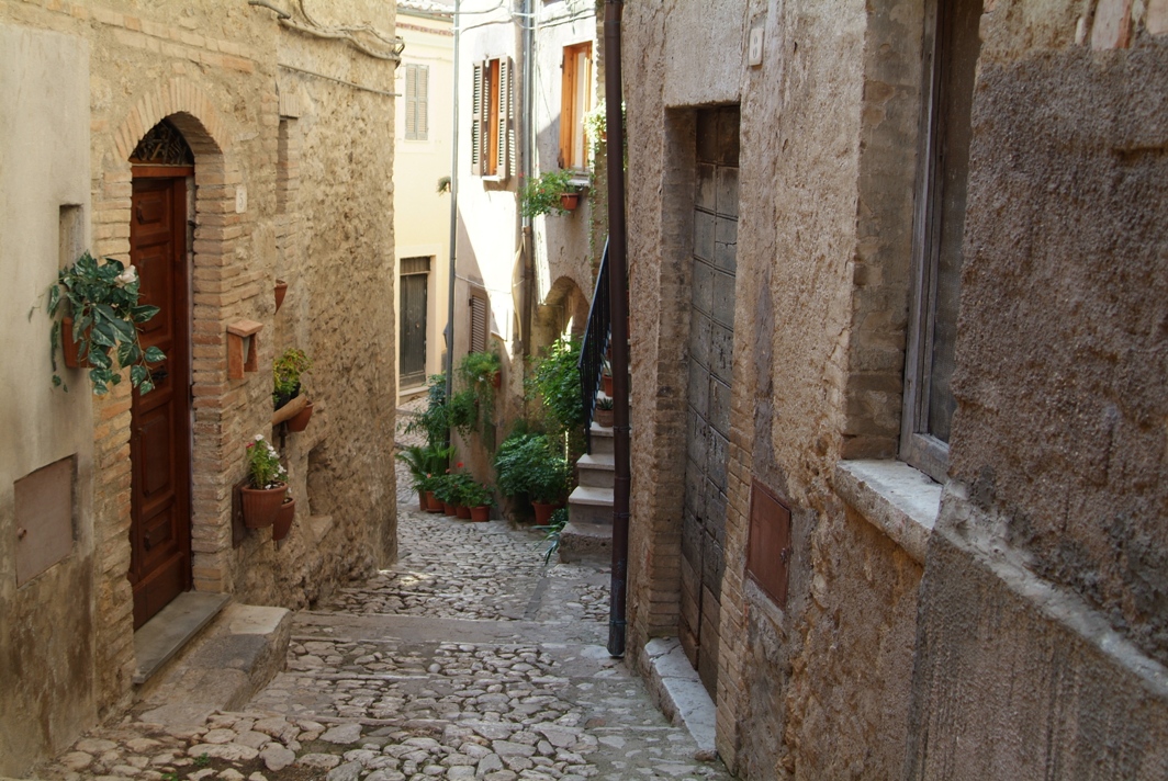 Su di una collina aguzza, Aspra ci appare come uno sciame agglutinato di case grigie e di tetti ocra, stretti da una cintura di mura e di torri lacerate, guastate dagli assalti dei guerrieri e dai terremoti, rovinate pure dall’opera degli abitanti che le hanno foracchiate di porte e di finestre o “abbellite” con tettoie e balconi. Attraverso questi acconciamenti pittoreschi, bisogna immaginare la città antica, severa e sempre pronta alla difesa: straordinaria visione è questa agglomerazione che si erge furiosa in mezzo a boschi, a colline coltivate ad oliveti e vigne, le stesse vigne di cui Numa, il re sabino, aveva insegnato l’arte e la cultura ai pastori selvaggi di allora. Davanti alle porte del paese bisogna fermare la vettura e attaccare i cavalli, poiché non ci sono strade, ma solo viuzze a gradini: le piazzette, gli archi, i cammini di ronda, quasi tutto è rimasto come mille anni fa. Giovanni Fattori, 1899