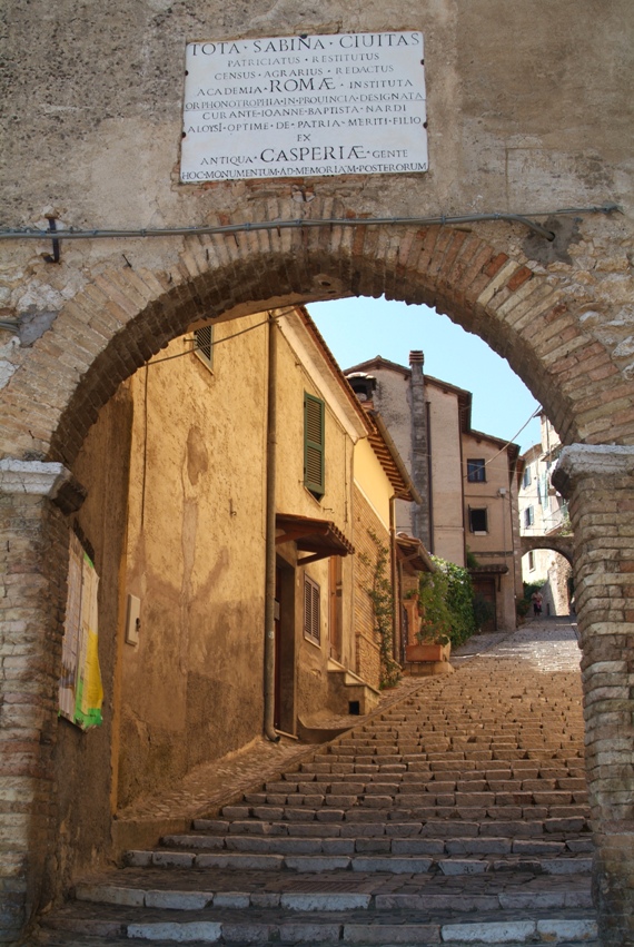 A Roma mi avevano consigliato di spingermi fino ad Aspra, sui monti della Sabina, dove è un importante archivio municipale ed una superba selva. [...] Scura e pittoresca, sorge su di un colle, da dove si gode la vista del monte Soratte, della Campagna romana, dei monti della Sabina, degli Appennini, e a sinistra di un profondo scoscendimento, dominato da una rupe, sulla quale si leva un oscuro gruppo di case, circondato da mura scure e coronato di torri. Questa è Aspra, la Casperia dei Romani, vero nido di aquile, inaccessibile ed inattaccabile. Era mezzodì, ma l’aria era lassù ancora fresca e leggera. Dopo i molti e lenti giri che la strada fa nella valle profonda, cominciammo alfine a salire la montagna faticosamente, e giungemmo dinanzi alle mura. Qui il cocchiere si arrestò, e mi spiegò che il paese non aveva strade praticabili. Scesi allora e mi avviai verso la porta. Ferdinand Gregorovius, 1861