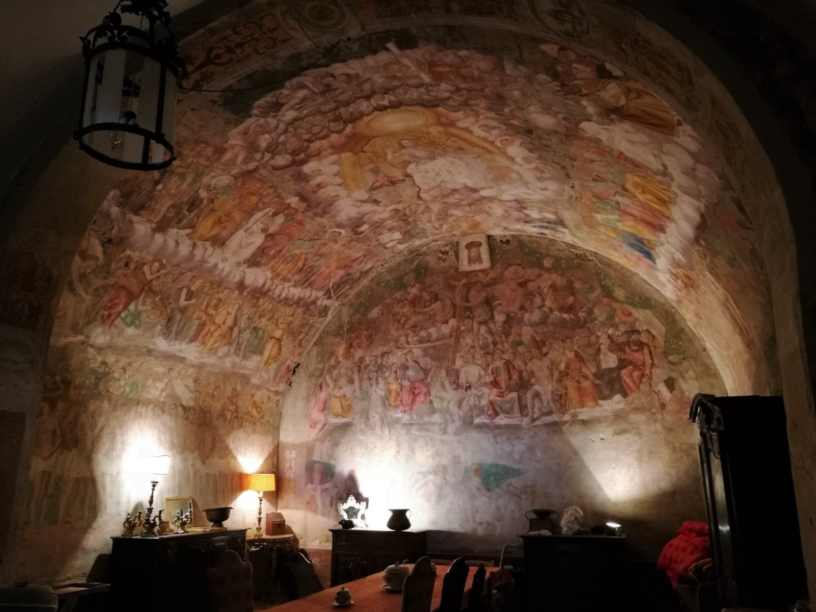 Santa Maria in Legarano, con l’affresco del Giudizio Universale e con il suo giardino incantato, è davvero un luogo magico. Oggi residenza privata, verrà aperto grazie alla disponibilità del conte Antonello Aluffi Pentini, che ringraziamo. Il sito si trova lungo la strada regionale 48 (Finocchieto) che collega Poggio Mirteto a Cottanello, un chilometro circa dopo il bivio per Casperia. Le massicce mura in opus reticulatum che lo circondano mostrano come sia stato edificato sui ruderi di una villa romana, sui quali venne costruito nel Medio Evo un castello (con annessa chiesa) e poi tra il XV e il XVI secolo sorse un convento. Furono dunque i frati a commissionare ai Torresani l’affresco del Giudizio Universale, terminato nel 1560, in un oratorio adiacente alla chiesa. Nell’occasion e i visitatori potranno anche vedere i giardini della villa.