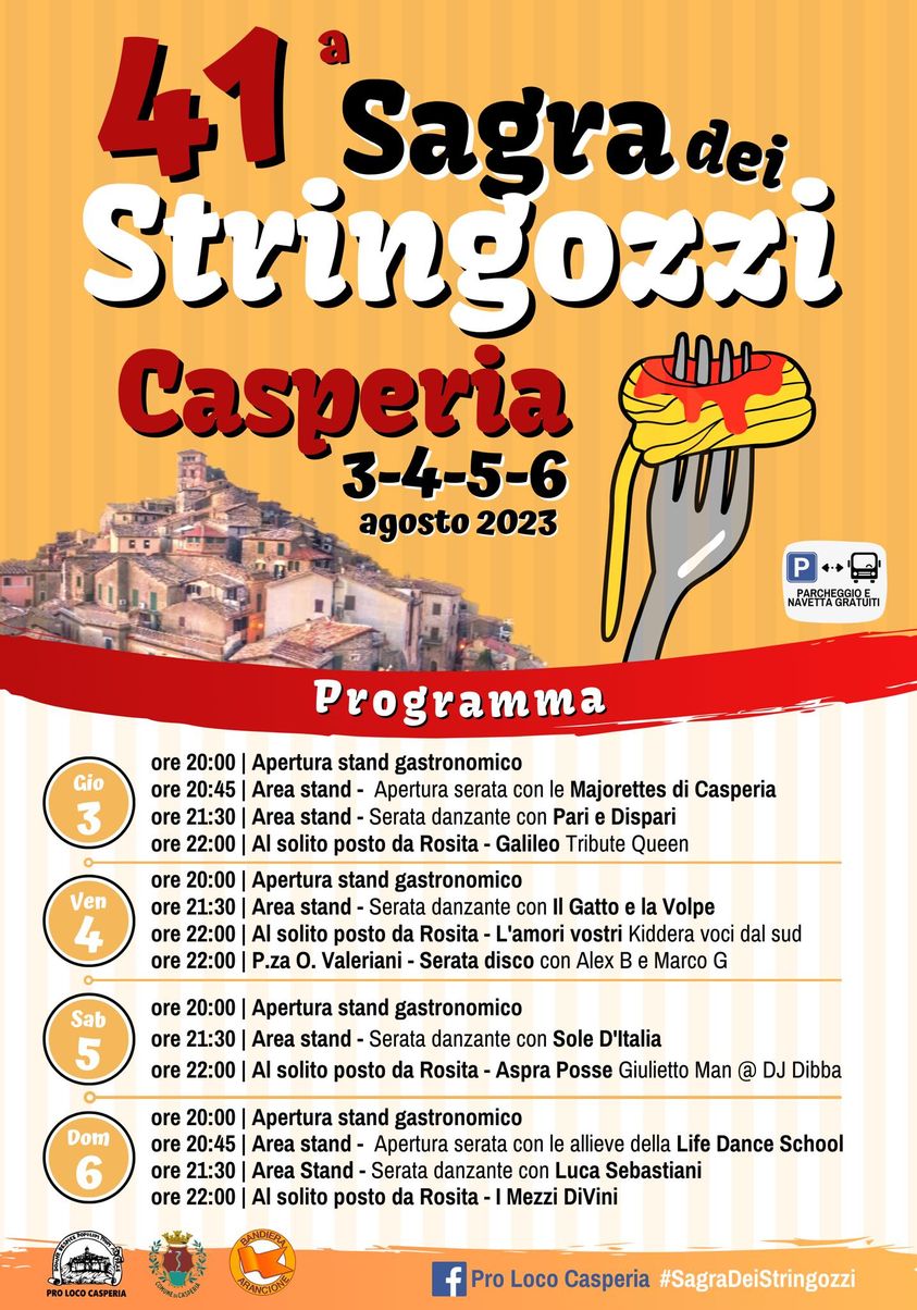 Dal 3 al 6 agosto, quattro serate all’insegna del tradizionale piatto casperiano e tanta buona musica nella cornice del meraviglioso borgo di Casperia!
