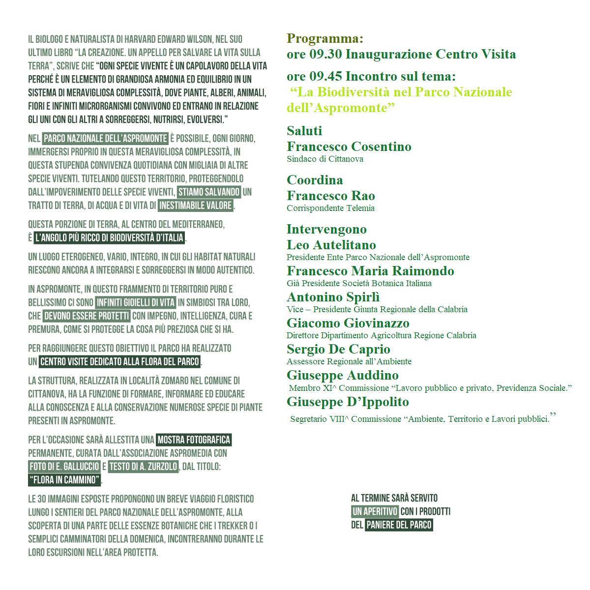 Stampa Condividi Facebook Twitter Whatsapp Telegram Email 28/08/2020 - Inaugurazione Centro Visite Parco localita' Zomaro Documentazione disponibile in allegato: Locandina Pieghevole Centri visiti Parco Attachments: LOCANDINA_Centri_visita_PARCO_(2) (1).pdf[ ]175 kB Pieghevole Centri visita PARCO_2.png[ ]217 kB Pubblicato: 28 Agosto 2020 Ultima modifica: 06 Dicembre 2021 Visite: 3944