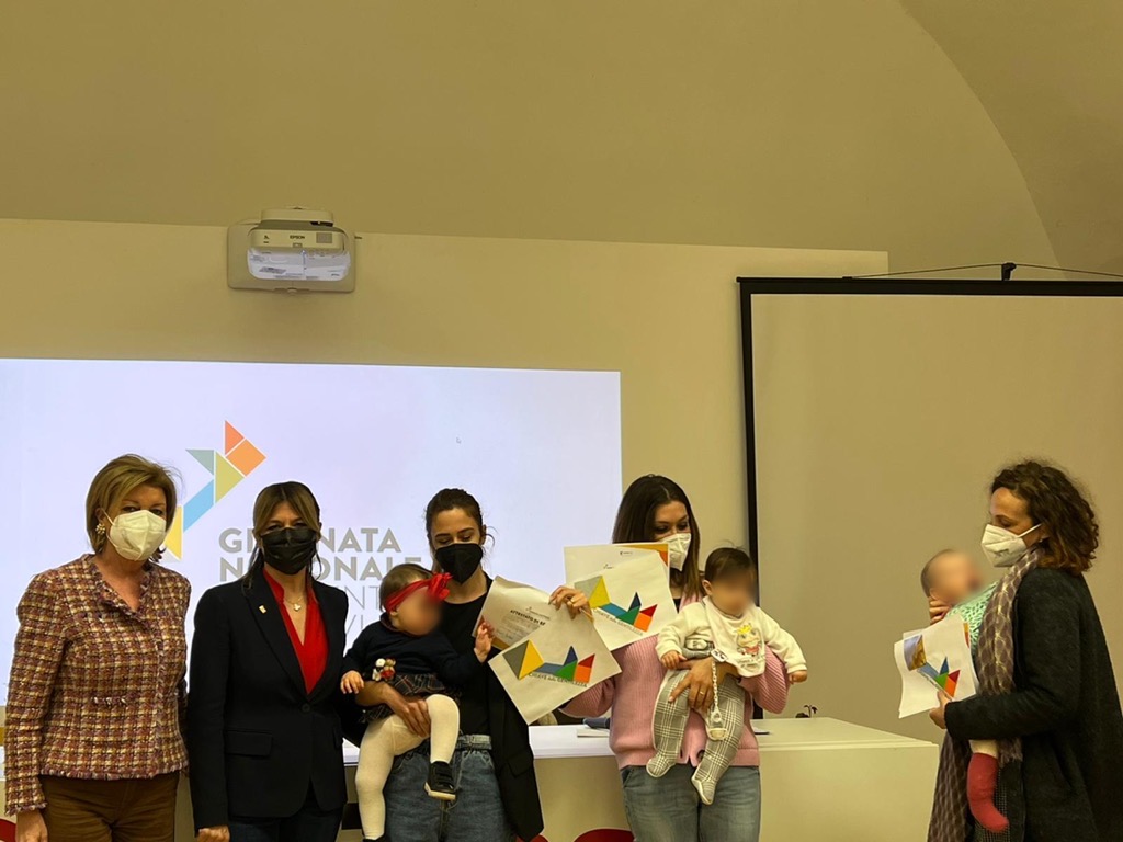 • Chiave della gentilezza e attestato di benvenuto ai nuovi nati del 2021, rappresentati da Maria Sole, Anna e Margherita