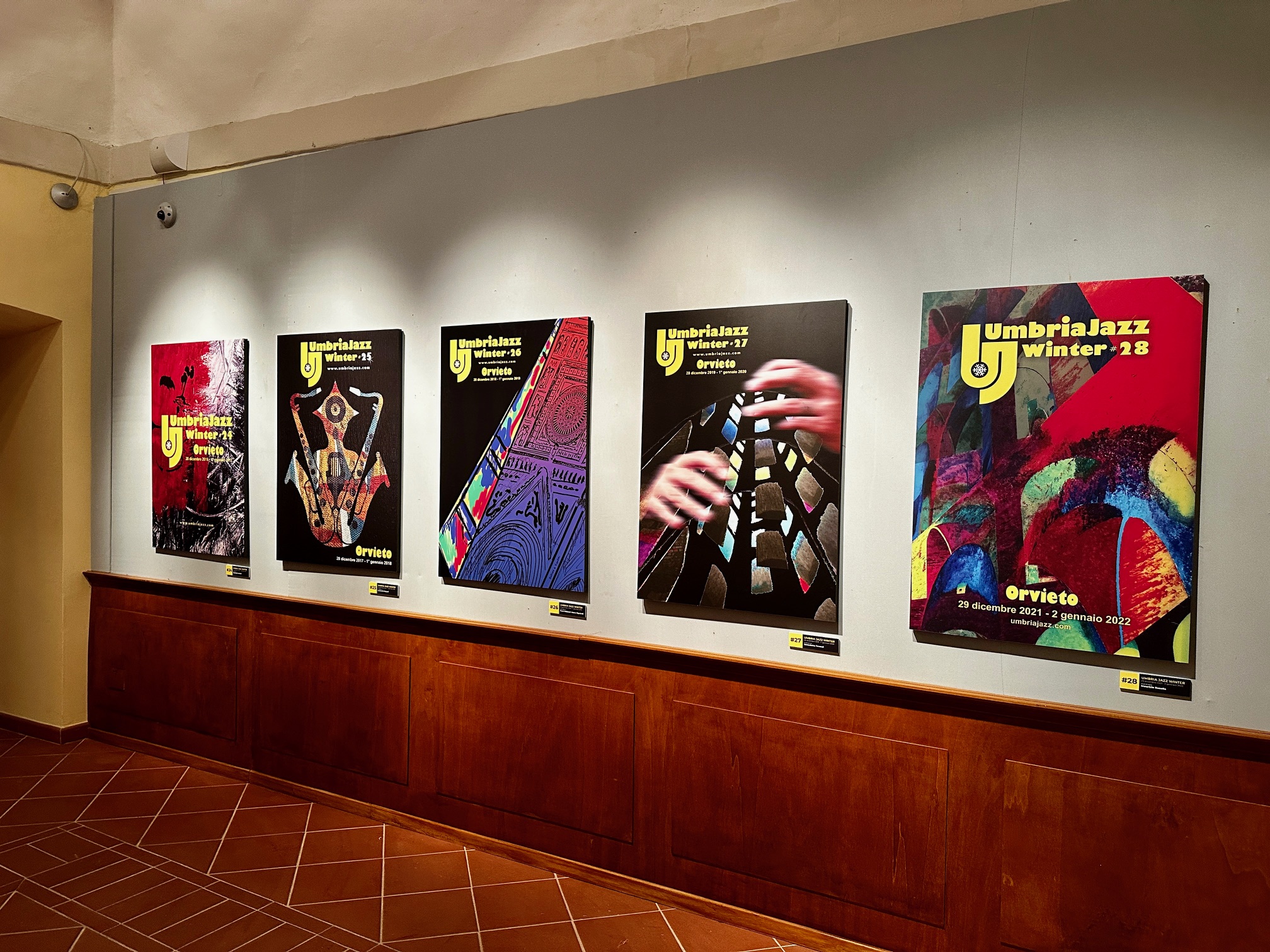 Riassumere una storia lunga 30 anni in una mostra dei manifesti del festival. È uno sguardo di insieme alle immagini che di edizione in edizione hanno annunciato Umbria Jazz Winter. La mostra, inaugurata questa mattina, è allestita nella sede della Fondazione Cassa di Risparmio di Orvieto e si può visitare fino al 7 gennaio. Il manifesto di quest’anno, come quello di Umbria Jazz 50, è firmato dall’artista inglese David Tremlett.