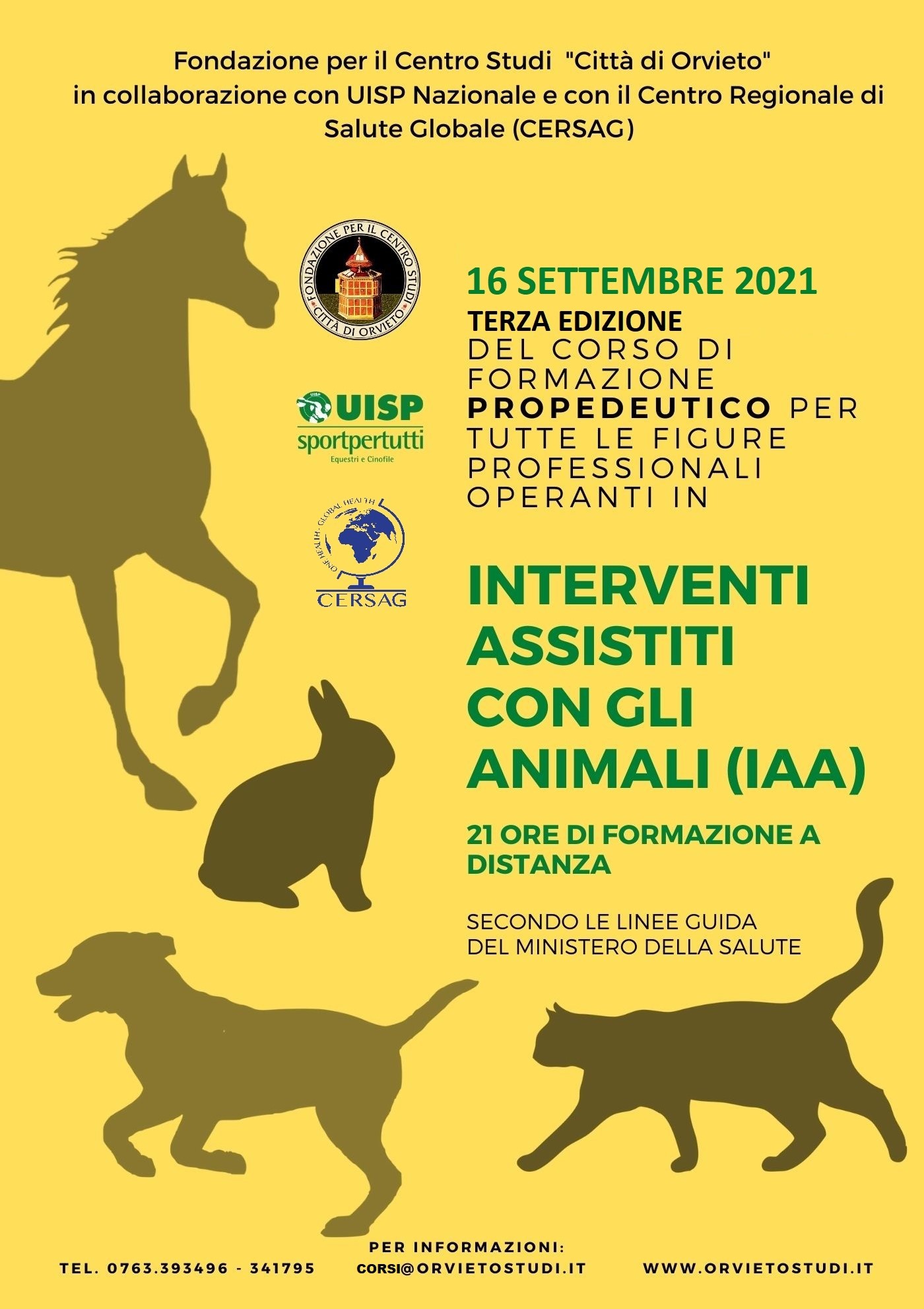 La Fondazione per il Centro Studi “Città di Orvieto” è stata riconosciuta dalla Regione Umbria come Ente idoneo all’erogazione di corsi di formazione in materia di IAA ed ha dato vita, quindi, già dal 2019 al primo centro autorizzato in Umbria. Uniformandosi alle indicazioni contenute nelle linee guida nazionali sugli IAA e nelle relative note del Ministero della Salute, la Fondazione si è dotata di tutti i requisiti indispensabili per l’erogazione della formazione in materia, quali la presenza di una Segreteria Scientifica, di un team di docenti qualificati e della collaborazione con strutture idonee ad accogliere gli allievi per lo svolgimento della parte pratica e del tirocinio obbligatorio nei percorsi formativi.