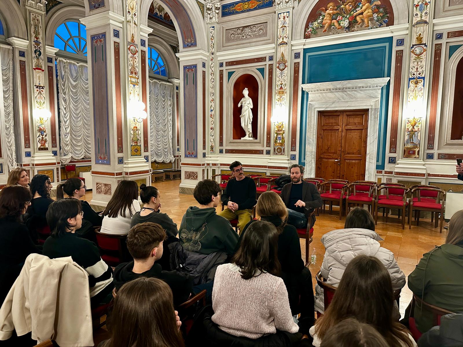 Insieme al Maestro Raffaele Doninelli, il musicista che lo ha accompagnato sul palco, Marchesi ha dialogato con i ragazzi raccontando la genesi di questo lavoro portato in scena che ha rielaborato e attualizzato il grande classico di Luigi Pirandello per renderlo più accessibile anche alle nuove generazioni. Gli stessi studenti poi hanno assistito allo spettacolo.