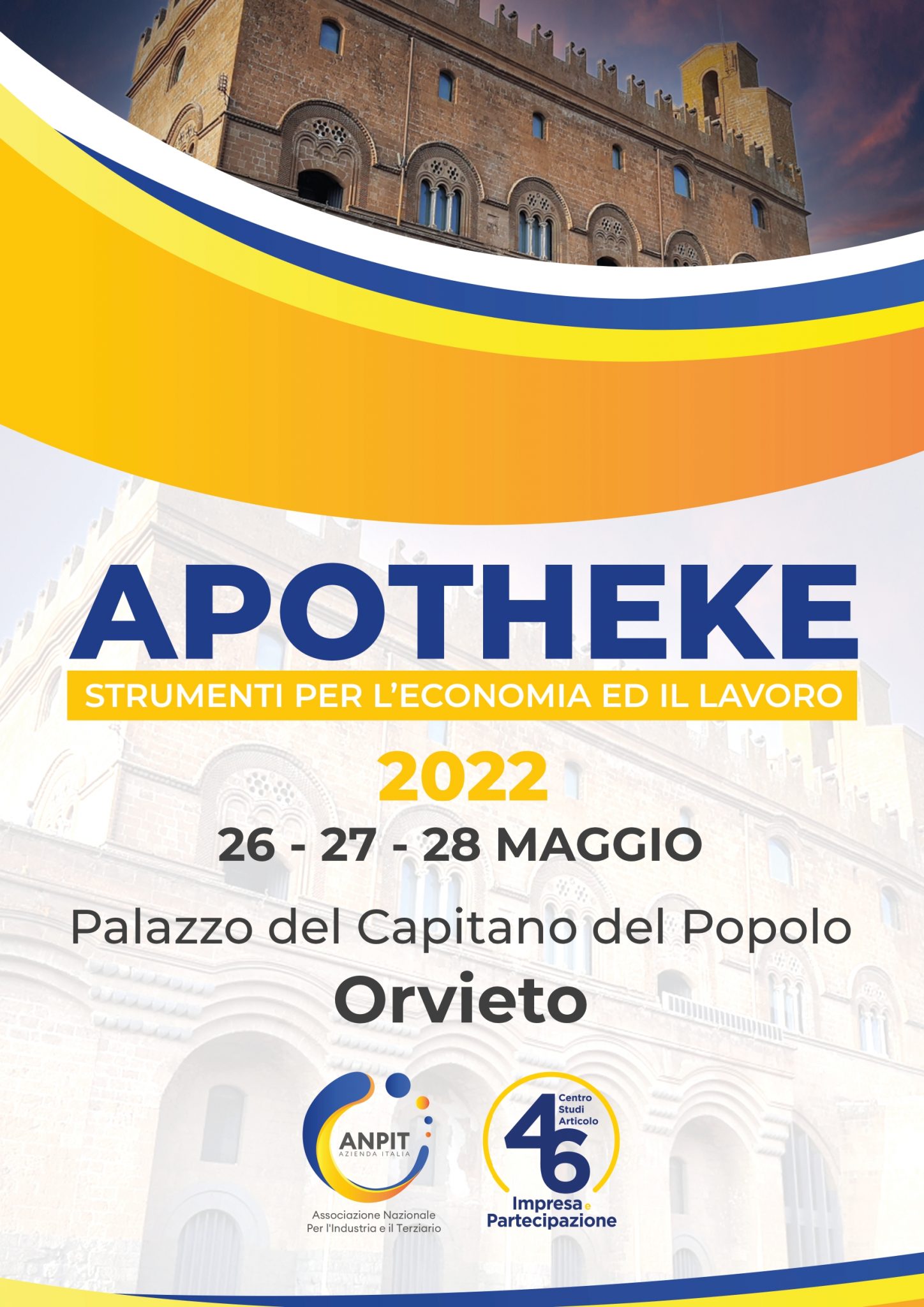 (ON/AF) – ORVIETO – Con il patrocinio del Comune di Orvieto dal 26 al 28 maggio prossimo nella sede congressuale del Palazzo del Popolo si svolgerà la II Edizione 2022 di “Apotheke”, la scuola di formazione di Anpit / Associazione Nazionale per l’industria e il terziario in collaborazione con il suo Centro studi Articolo 46, dedicata alla formazione economica e giuridica dei quadri dirigenti ANPIT, imprenditori e professionisti, allo scopo di fornire un valido supporto su argomenti di interesse per la propria attività (l’appuntamento è accreditato sulla piattaforma Formazione Continua dell’Ordine dei Consulenti del Lavoro).
