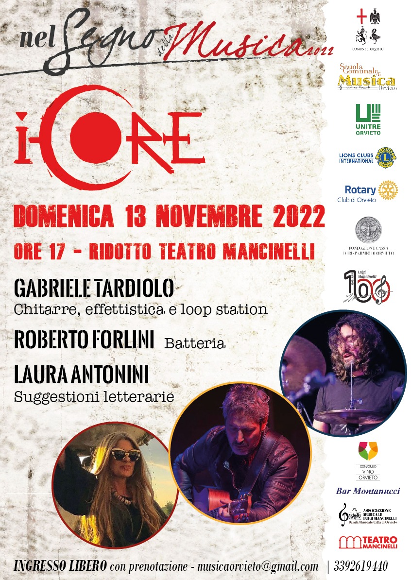 (ON/AF) – ORVIETO – Per la stagione musicale “Nel Segno della Musica” programmata nel Ridotto del Teatro Mancinelli di Orvieto, Domenica 13 Novembre alle ore 17 è protagonista il progetto I Core, con Gabriele Tardiolo, Roberto Forlini e la partecipazione di Laura Antonini.