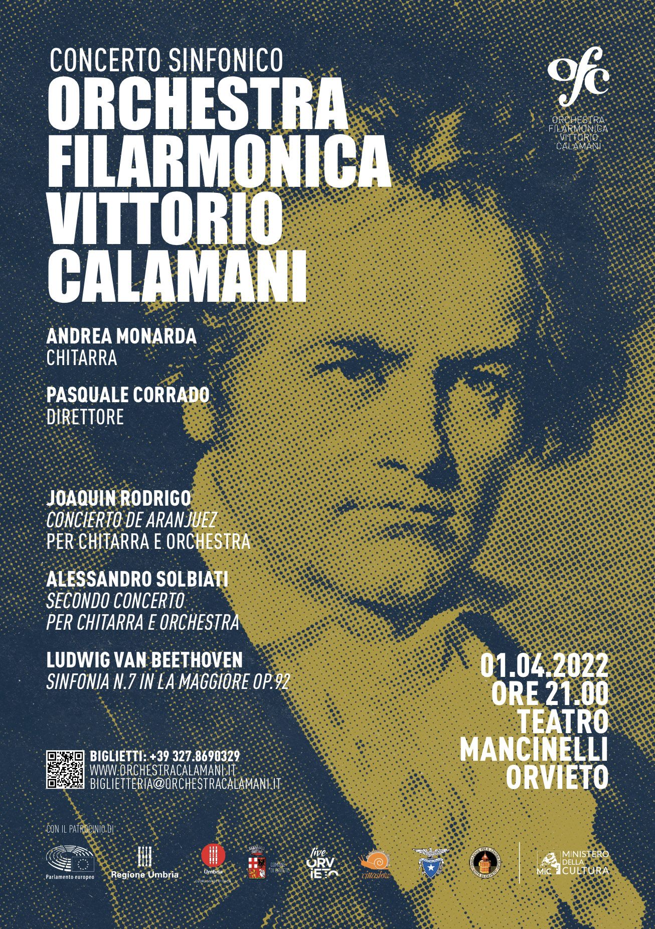 (ON/AF) – ORVIETO – Dopo il concerto di chiusura della V edizione del Festival della Piana del Cavaliere svoltosi lo scorso settembre sotto la direzione del M° Hossein Pishkar, la Filarmonica Vittorio Calamani, orchestra residente del Festival ormai dal 2019, torna sul palco del Teatro Mancinelli di Orvieto – venerdì 1° aprile alle ore 21 – con un concerto sinfonico diretto dal M° Pasquale Corrado, con Andrea Monarda alla chitarra.