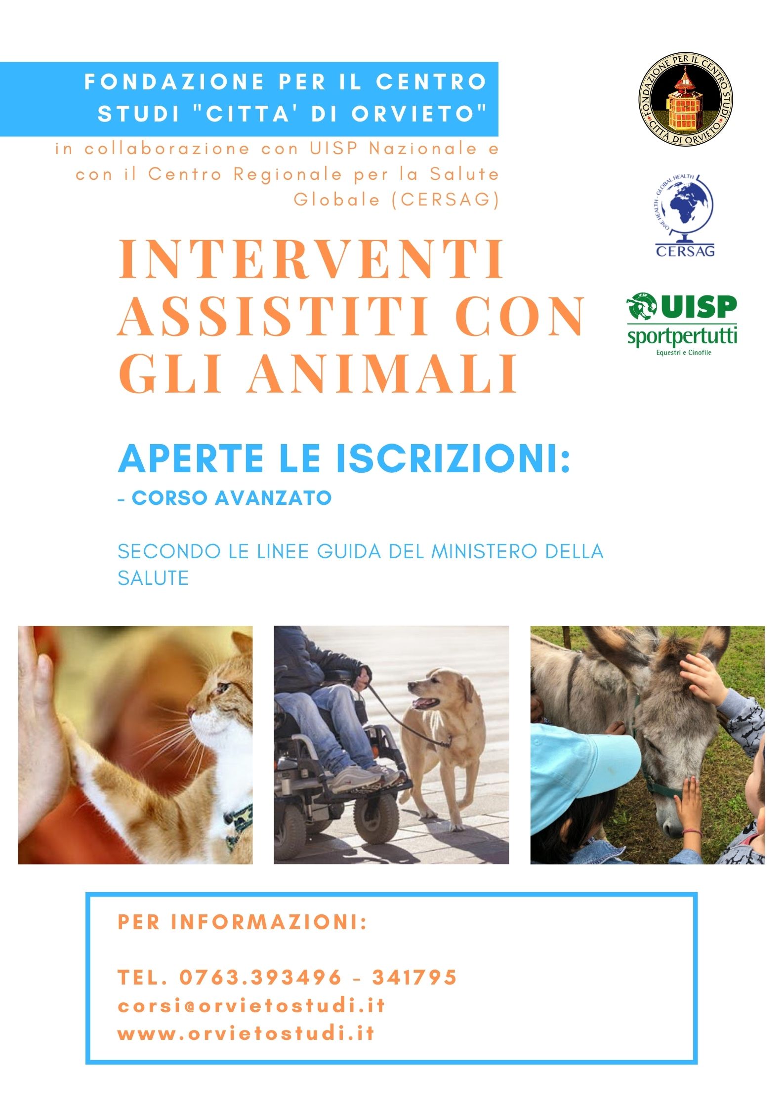 (ON/AF) – ORVIETO – Prende il via venerdì 11 giugno il Corso Avanzato per le figure professionali operanti negli IAA – Interventi Assistiti con gli Animali. Il corso è organizzato dalla Fondazione per il Centro Studi “Città di Orvieto”, ente accreditato presso la Regione Umbria anche per questo specifico settore formativo, in collaborazione con il CERSAG – Centro Regionale per la Salute Globale e UISP Nazionale.