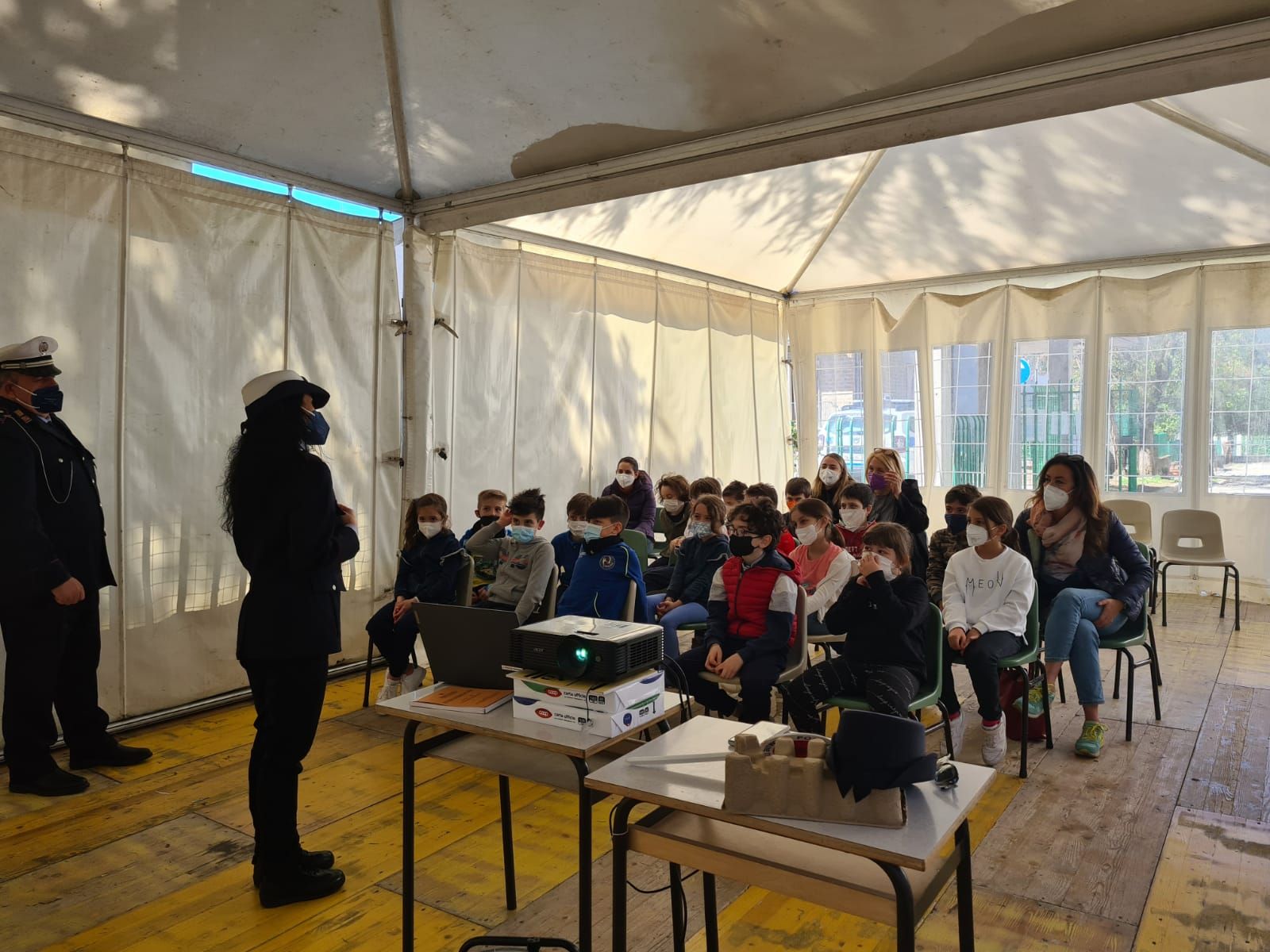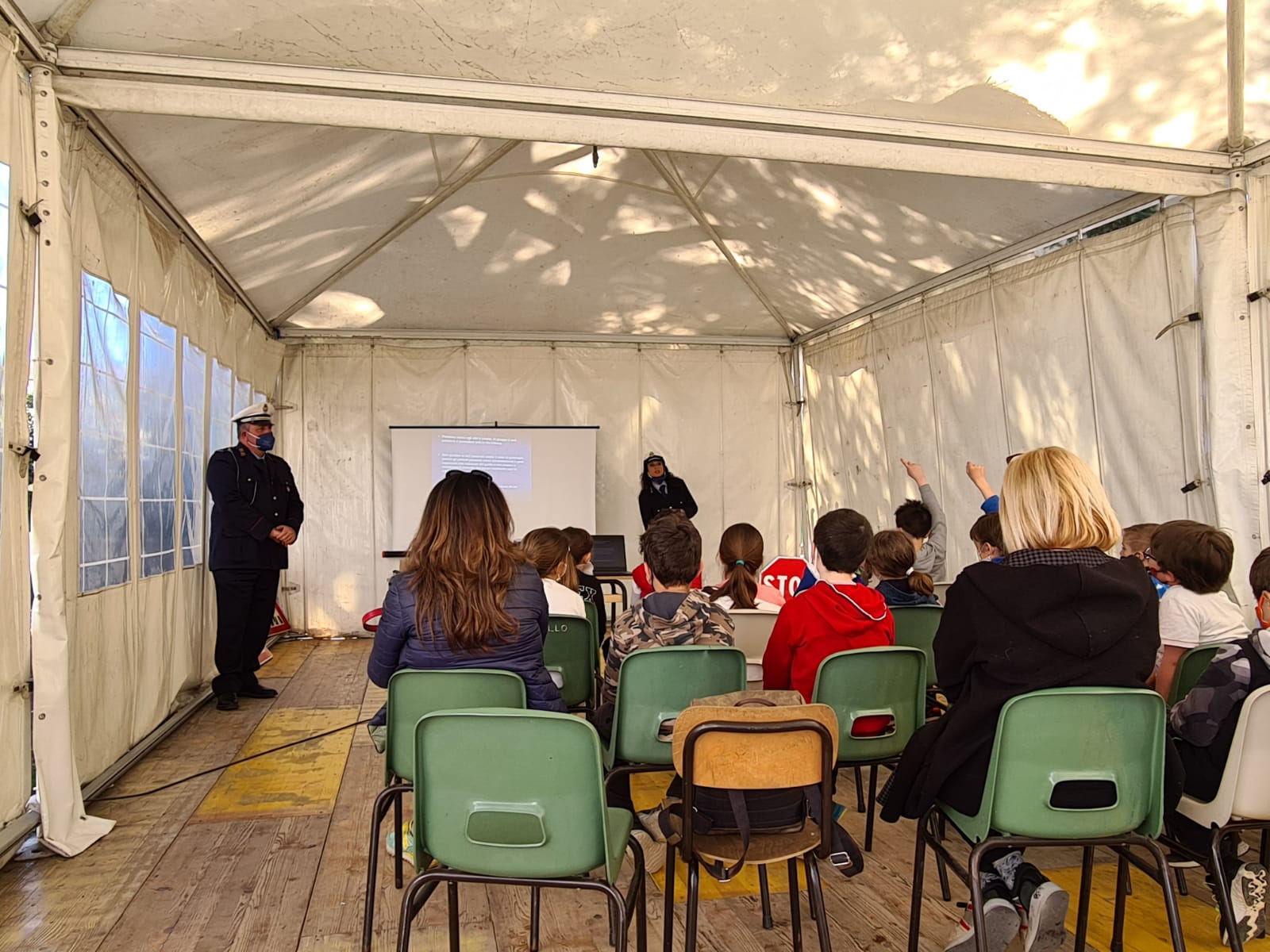 L’incontro ha consentito ai bambini di capire meglio che la strada è un luogo che ha i suoi pericoli e che bisogna fare sempre molta attenzione e rispettare le regole perché andare sulla strada non è un gioco! Ma anche di conoscere i compiti svolti dagli Agenti di Polizia Locale, una figura amica che aiuta tutti a rispettare le regole necessarie per garantire la propria sicurezza e quella degli altri. Regole che sono raccolte nel Codice della Strada e che sono fondamentali perché in ogni evenienza tutti indistintamente devono sapere come comportarsi, sia i pedoni sia tutti coloro utilizzano i veicoli, a partire proprio dalla bicicletta usata da tutti i bambini.