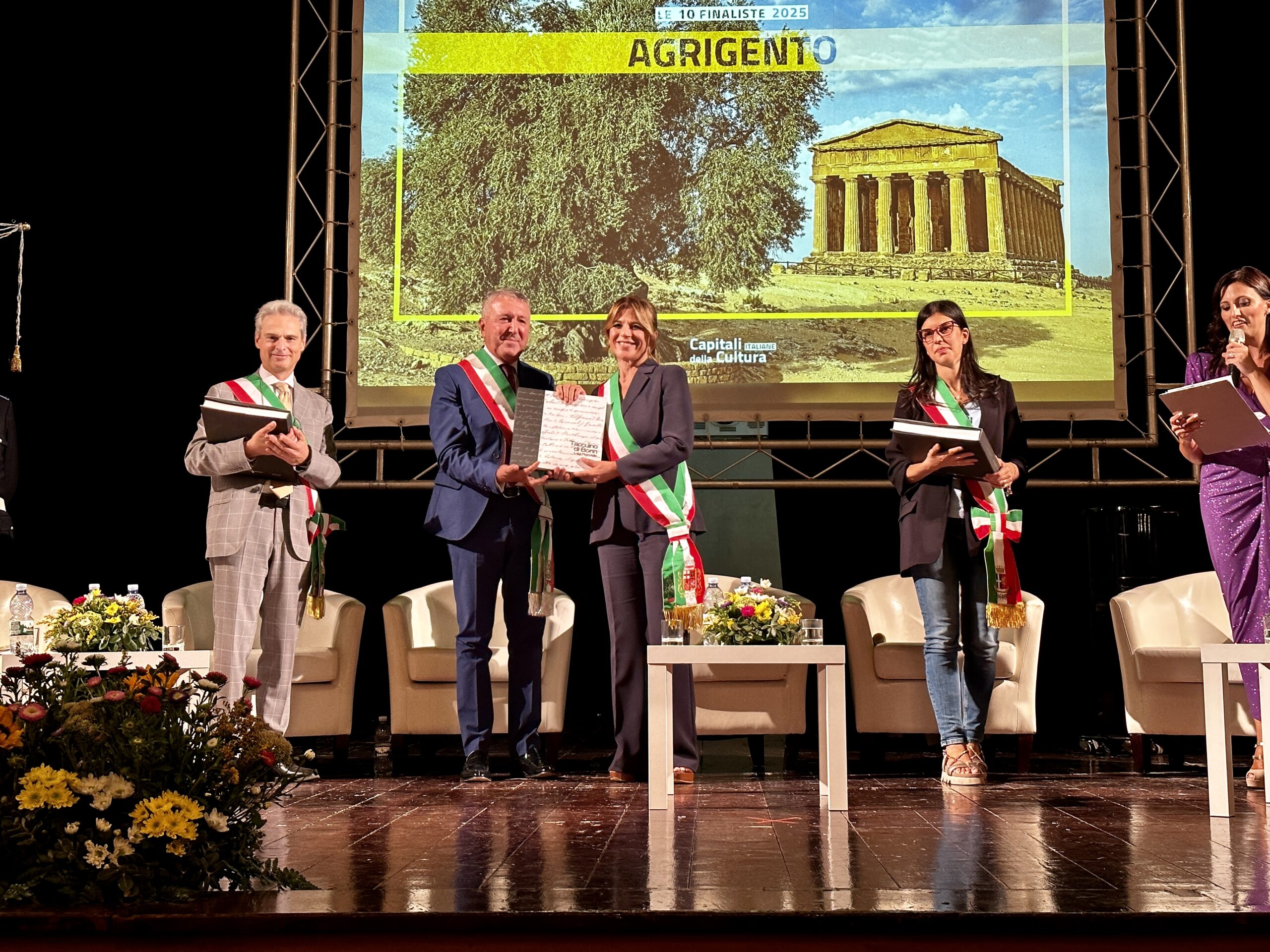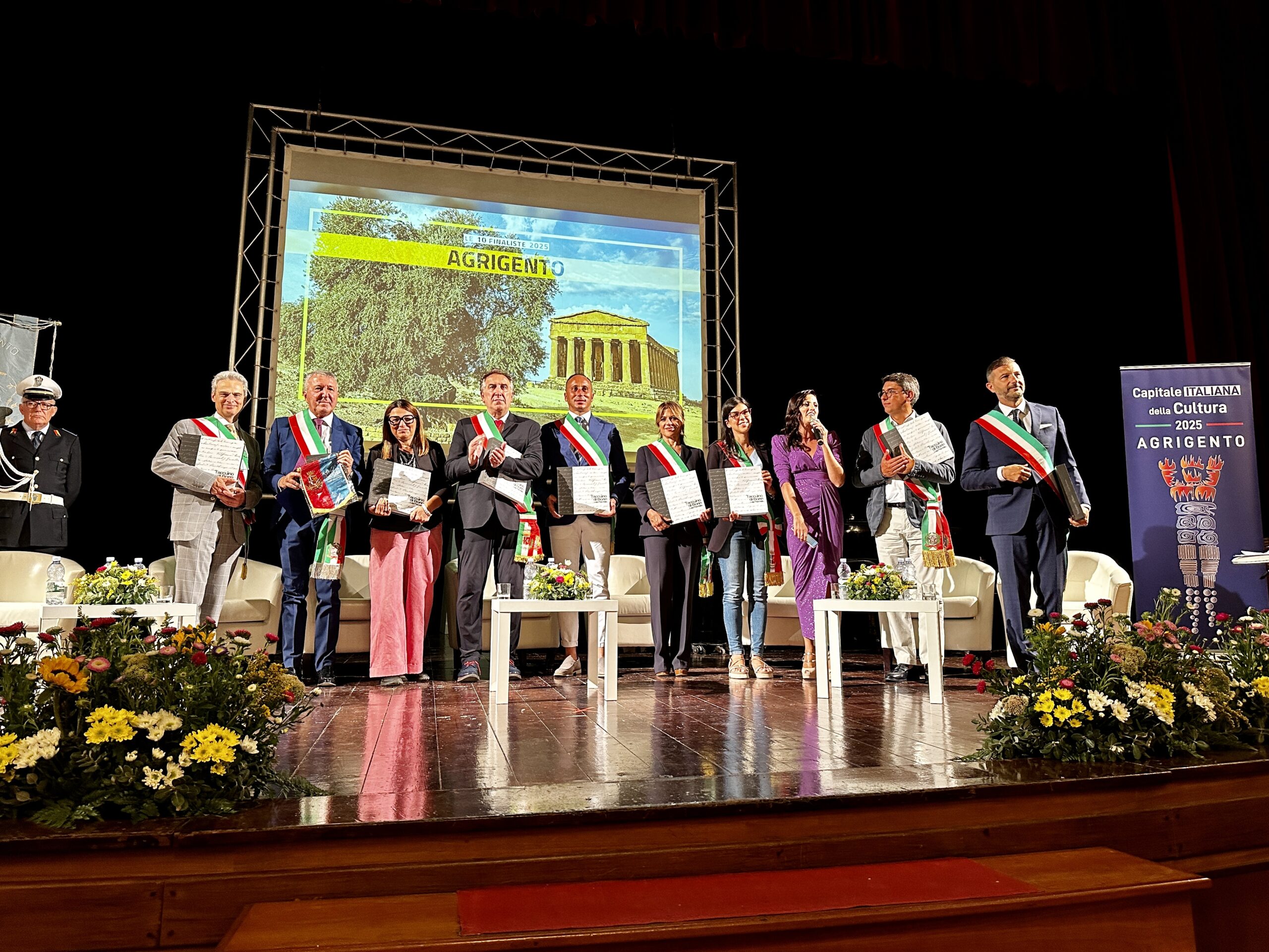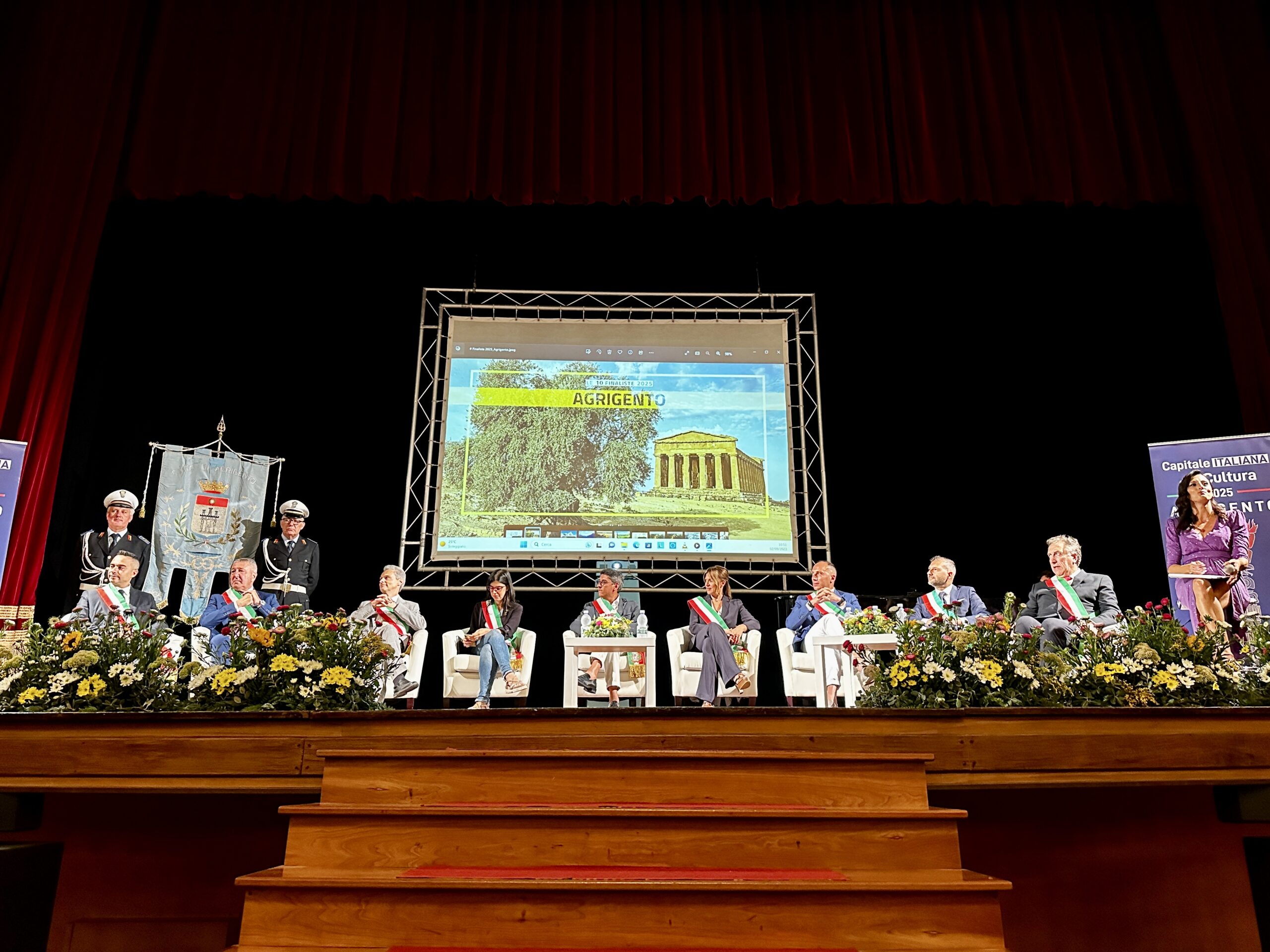 Gli amministratori delle dieci città si sono confrontati nel corso del convegno che si è tenuto al Teatro Pirandello sabato 2 settembre mentre domenica 3 settembre alla Valle dei Templi, davanti al Tempio della Concordia, hanno partecipato, insieme ai sindaci della provincia di Agrigento, allo spettacolare aviolancio della squadra sportiva del 1° Reggimento Carabinieri paracadutisti “Tuscania” che hanno consegnato la bandiera italiana al primo cittadino di Agrigento, Francesco Micciche, aprendo idealmente le iniziative che porteranno al 2025.