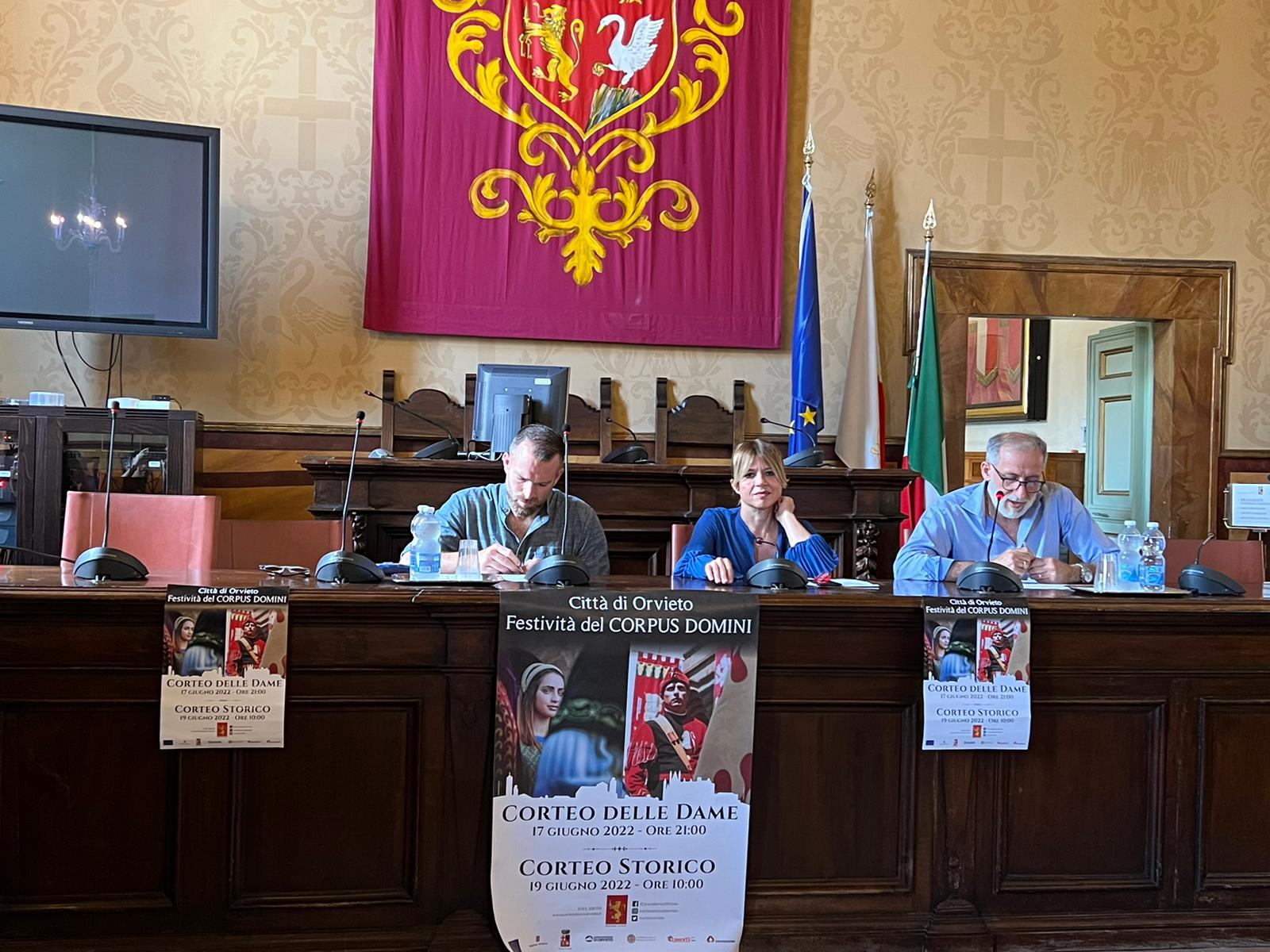 Finalmente, Domenica 19 giugno, solennità del Corpus Domini, a partire dalle ore 10, il Corteo Storico della Città di Orvieto – considerato uno dei più belli d’Italia con i suoi 430 figuranti, 44 tamburi e 100 bandiere – tornerà a sfilare per la 71^ edizione, lungo le vie e piazze del centro storico ad accompagnare la processione religiosa della reliquia del “Sacro Corporale” del Miracolo Eucaristico di Bolsena, custodita in Duomo e ad onorare questa storia secolare, facendo rivivere lo splendore del potente e libero Comune medievale di Orvieto, le rappresentazioni sociali, politiche e militari del tempo che l’artigianato artistico orvietano ha espresso sapientemente e che, da sempre, è motivo di orgoglio per tante generazioni di cittadini che ne perpetuano la tradizione.
