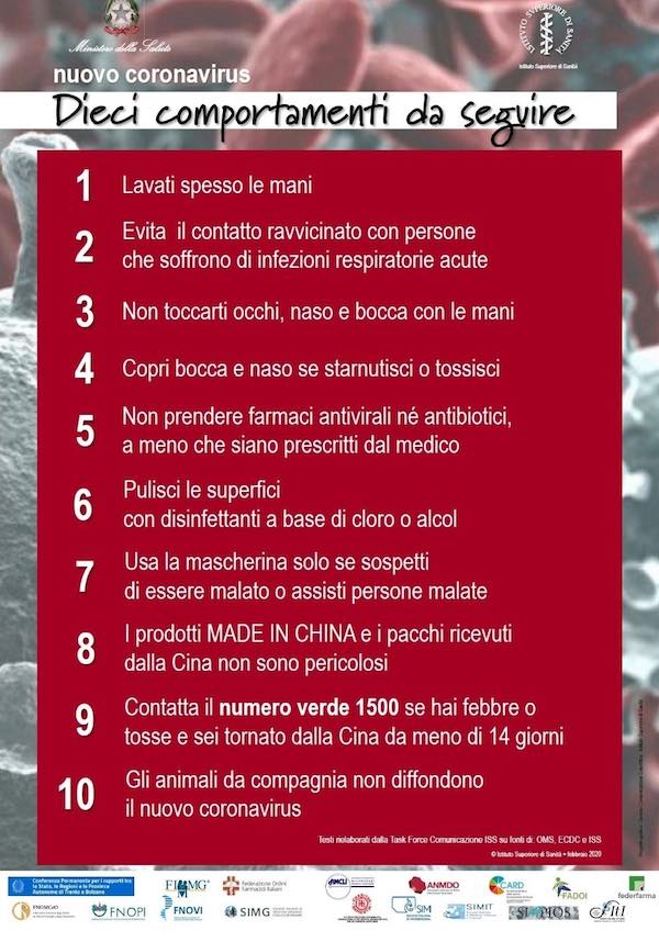 Decalogo del Ministero della Salute su igiene e comportamenti da seguire (Vedi Allegato).
