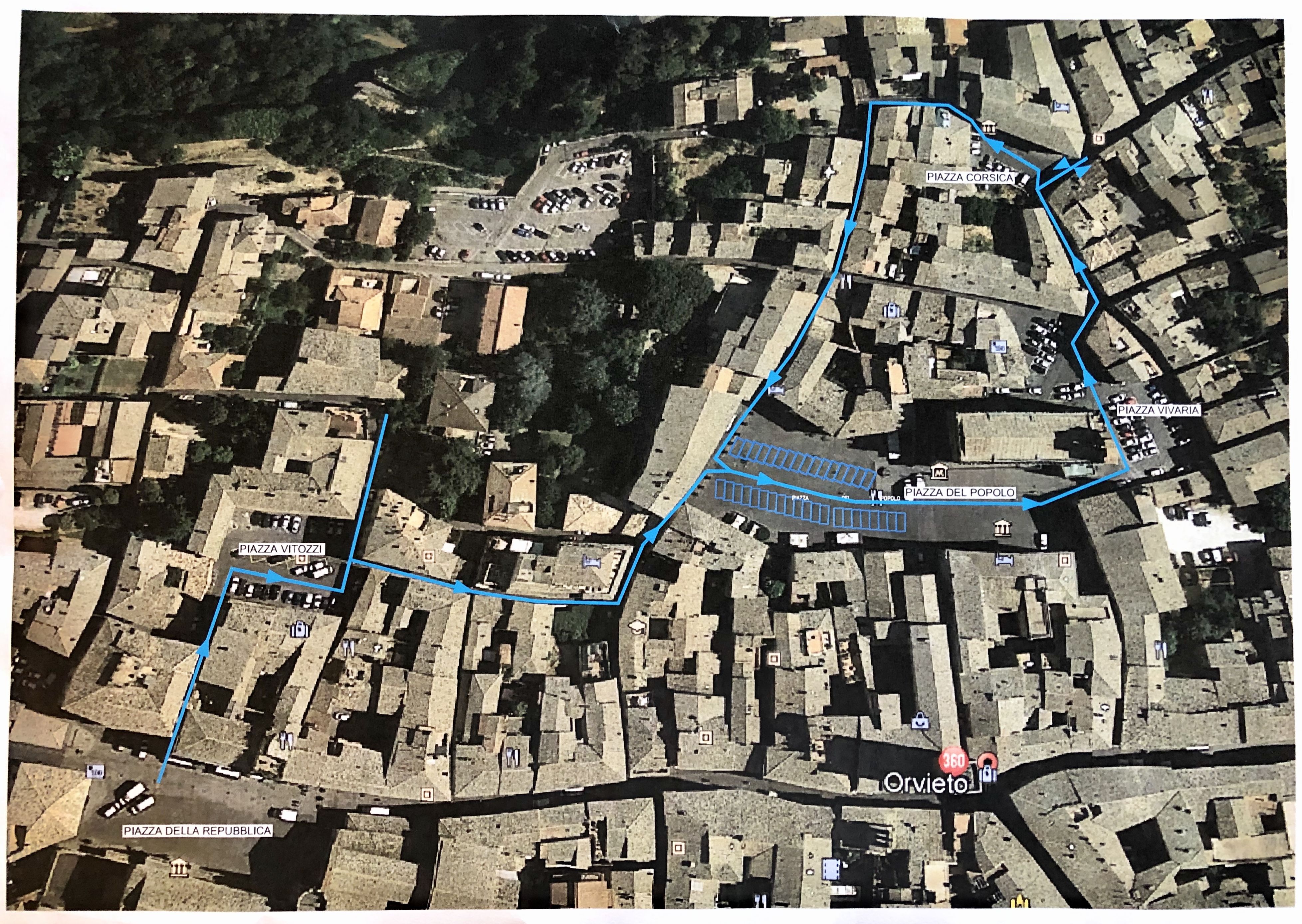 1. Vengono istituiti stalli di sosta a strisce blu disciplinati a pagamento tramite parcometri in Piazza del Popolo nella porzione di Piazza compresa tra la direttrice di via del Popolo e la Chiesa di San Rocco.