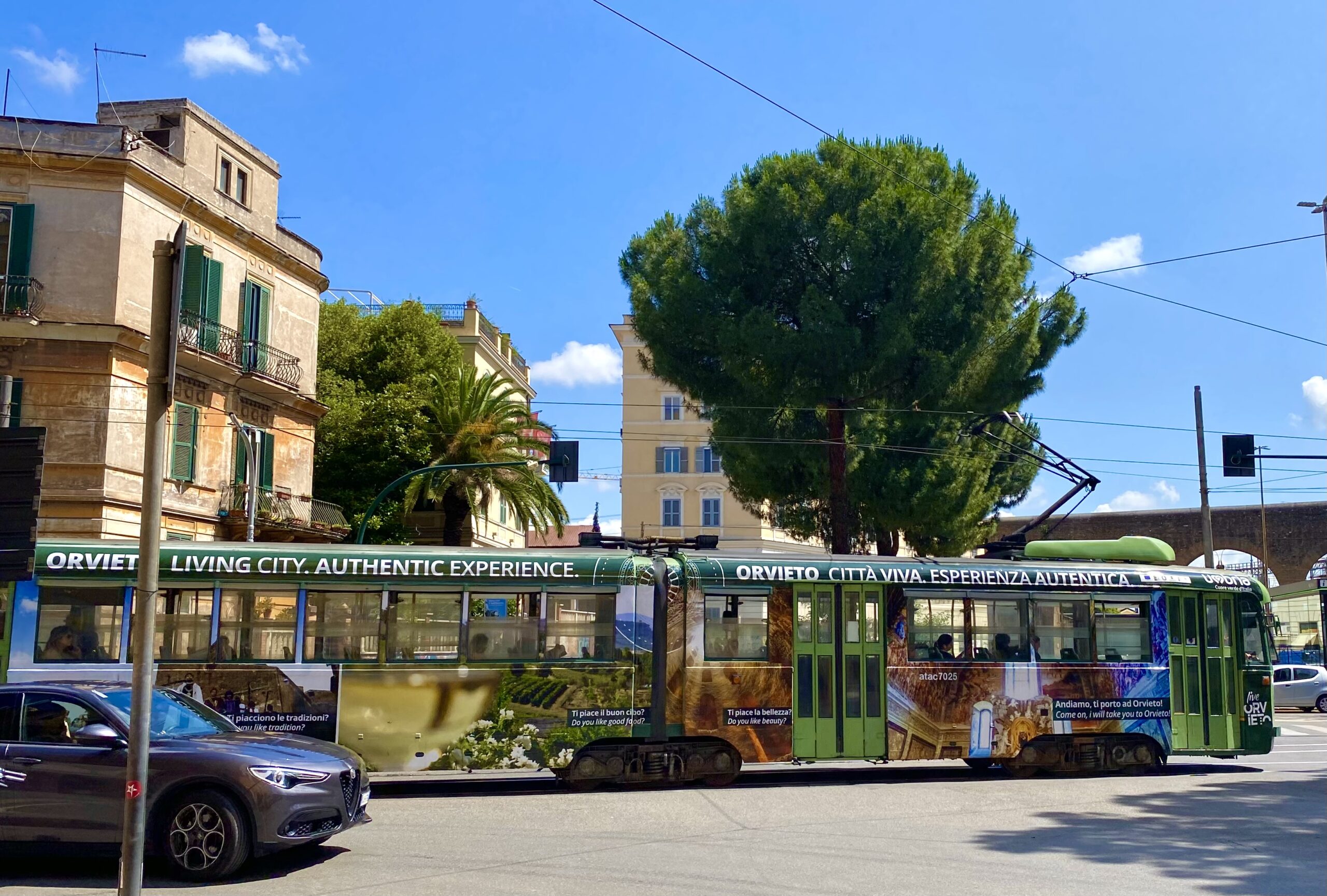 Fino al 15 luglio un intero tram brandizzato con le immagini della città di Orvieto percorrerà le strade della Capitale con una copertura capillare di tutta la rete tramviaria. Ieri pomeriggio e questa mattina il mezzo ha percorso la linea 3 da Trastevere a Villa Giulia attraversando il Circo Massimo, il Colosseo, San Giovanni, l’Università “La Sapienza” e il quartiere Parioli.