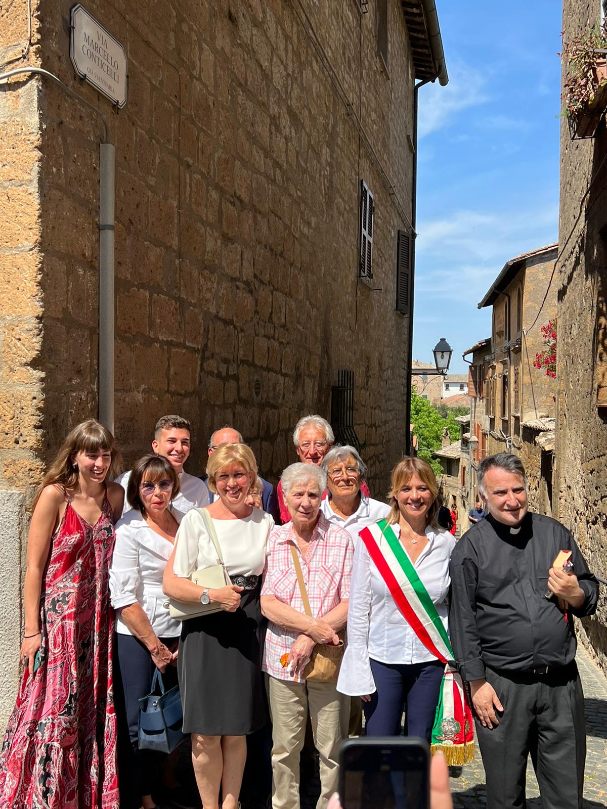 E’ proprio a Lea Pacini e Marcello Conticelli che questa mattina, con una duplice e sobria cerimonia in due diversi punti della città, la municipalità orvietana ha intitolato due luoghi significativi del centro storico: la piazza tra corso Cavour e via de’ Montemarte (già detta di Fontana Secca) che da oggi si chiama Piazza LEA PACINI e Via MARCELLO CONTICELLI ovvero il tratto di strada compreso tra via del Popolo e Piazza Cimicchi (già denominato Via Vivaria).