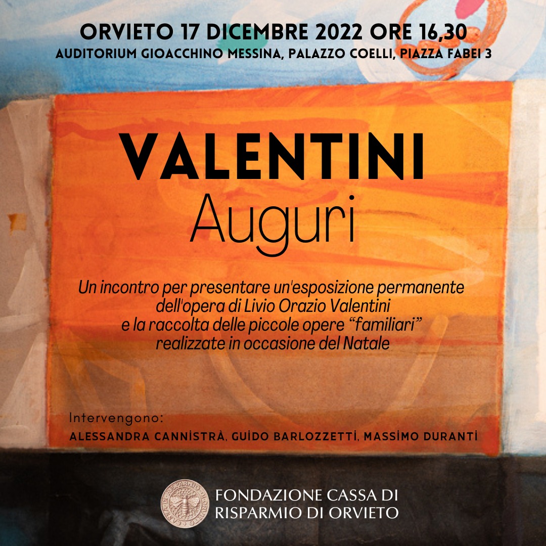 Presentazione esposizione permanente dell’opera di Livio Orazio Valentini alla Fondazione Cassa di Risparmio di Orvieto. Sabato 17 dicembre h 16:30 presso Auditorium Gioacchino Messina a Palazzo Coelli