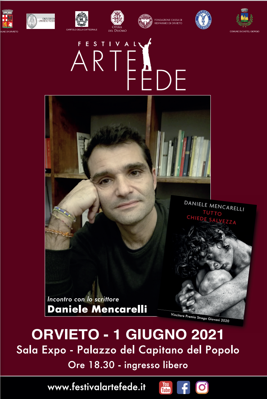 Nell’ambito del programma dei festeggiamenti del Corpus Domini 2021, la prima iniziativa-spot del Festival Internazionale d’Arte e Fede, è l’incontro con lo scrittore Daniele Mencarelli, vincitore del Premio Strega Giovani 2020 e il suo intenso romanzo “Tutto chiede salvezza” (Edizioni Mondadori), una storia di sofferenza e speranza, interrogativi brucianti e luminosa scoperta. L’appuntamento si svolgerà martedì 1° giugno 2021 alle ore 18:30 nella Sala Expo del Palazzo del Capitano del Popolo di Orvieto con ingresso libero.