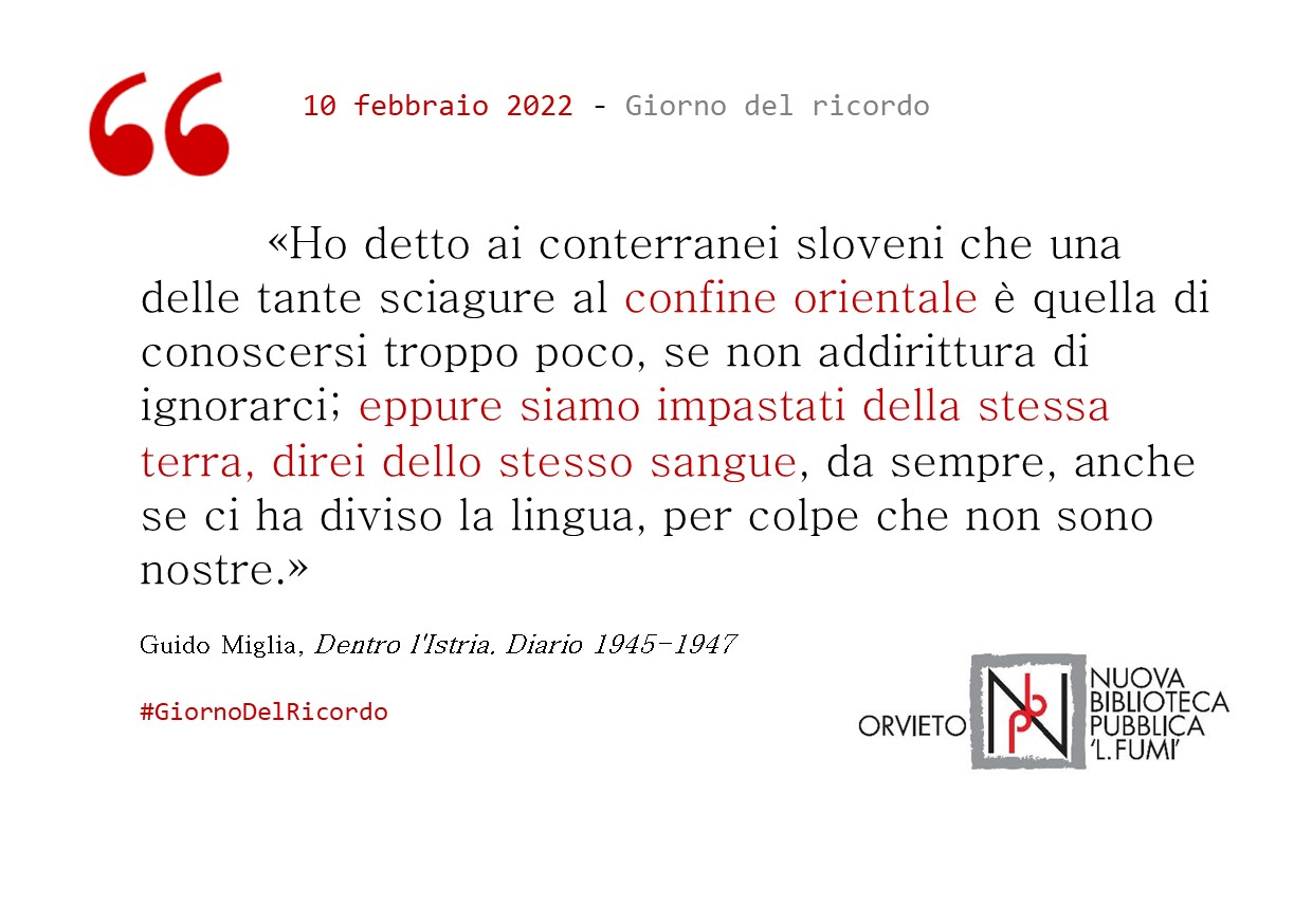 • Nuova Biblioteca Pubblica “Luigi Fumi” propone agli utenti una scelta di letture tratte dalle voci dei testimoni dell’esodo giuliano dalmata