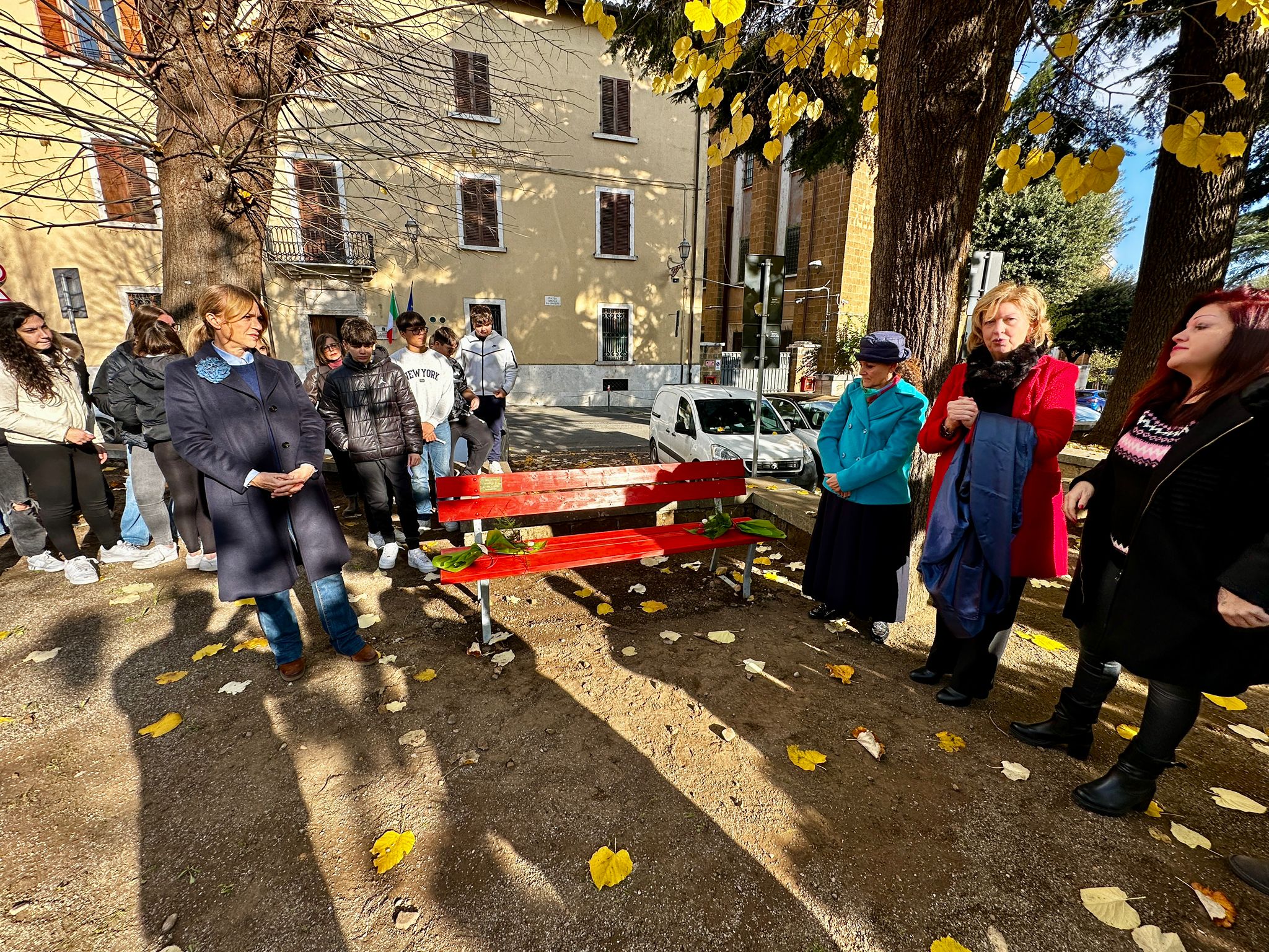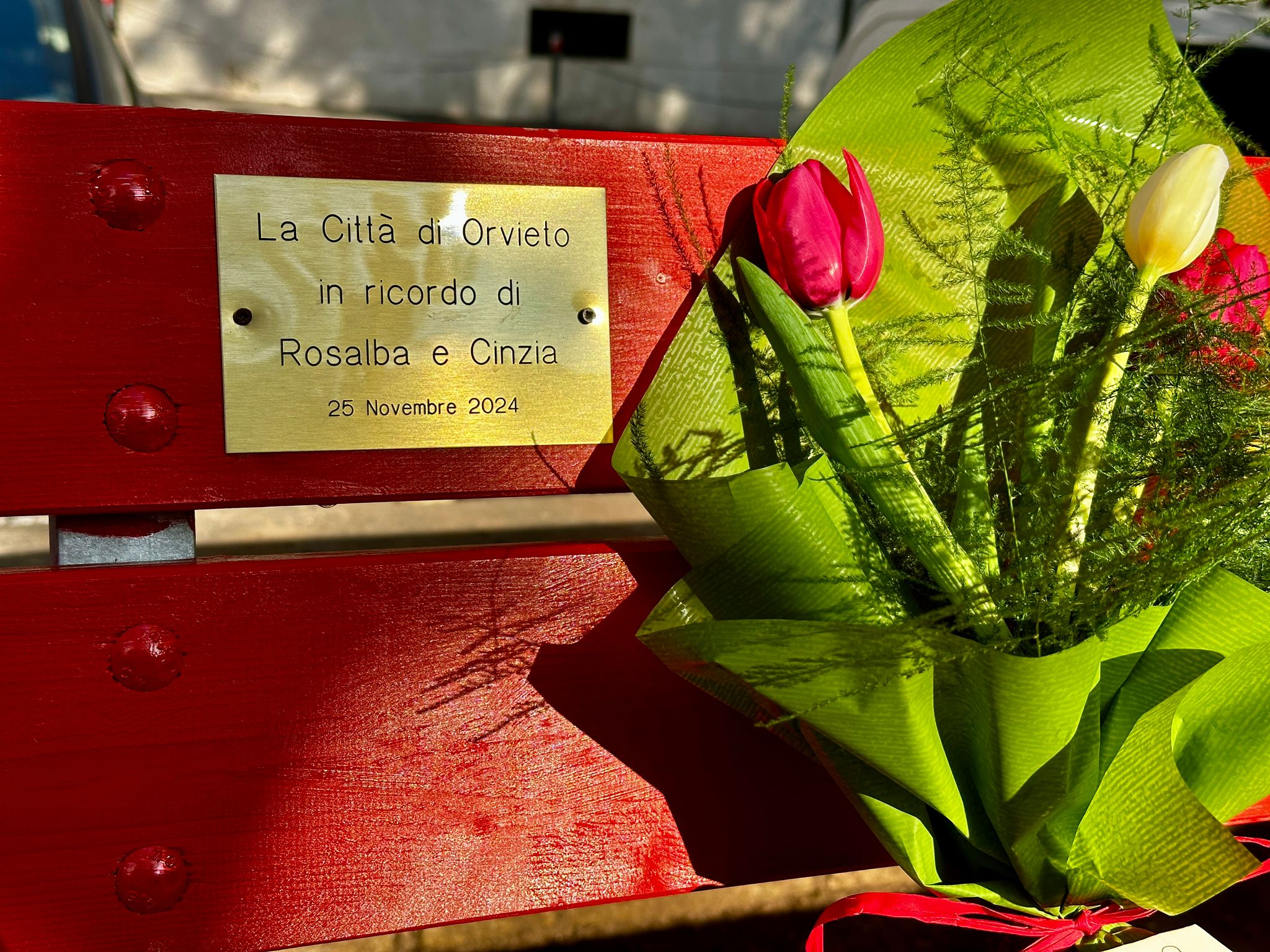 (COMUNICAZIONE) ORVIETO – Inaugurata questa mattina, venerdì 29 novembre, nel Giardino della Gentilezza in Piazza Angelo da Orvieto, la panchina rossa dedicata a Rosalba Politi e Cinzia Carletti, madre e figlia, vittime di un femminicidio il 14 novembre 2019.